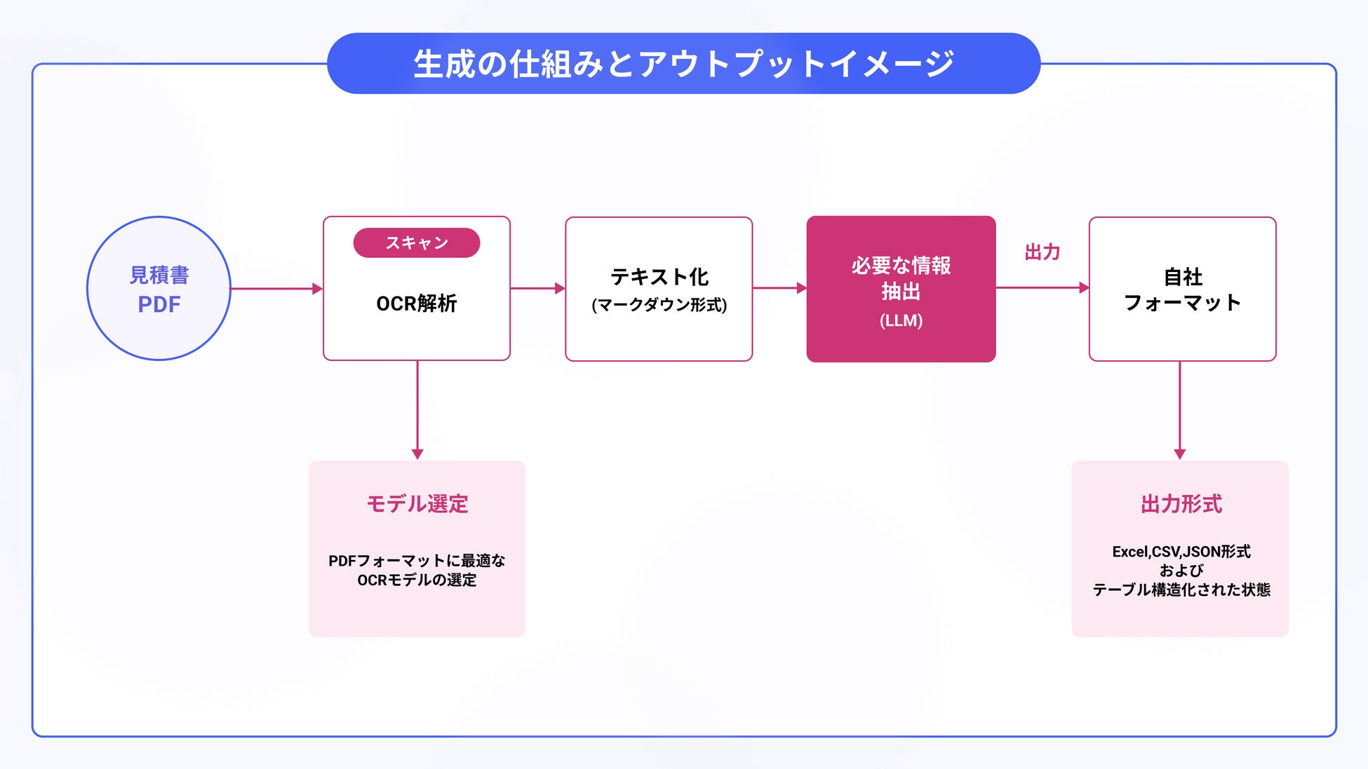 多様なフォーマットとレイアウトを持つ見積書をOCR/LLMを活用して自社フォーマットに変換して管理するために、見積書を構造化データに変換するための最適なOCR/プロンプトを検証。