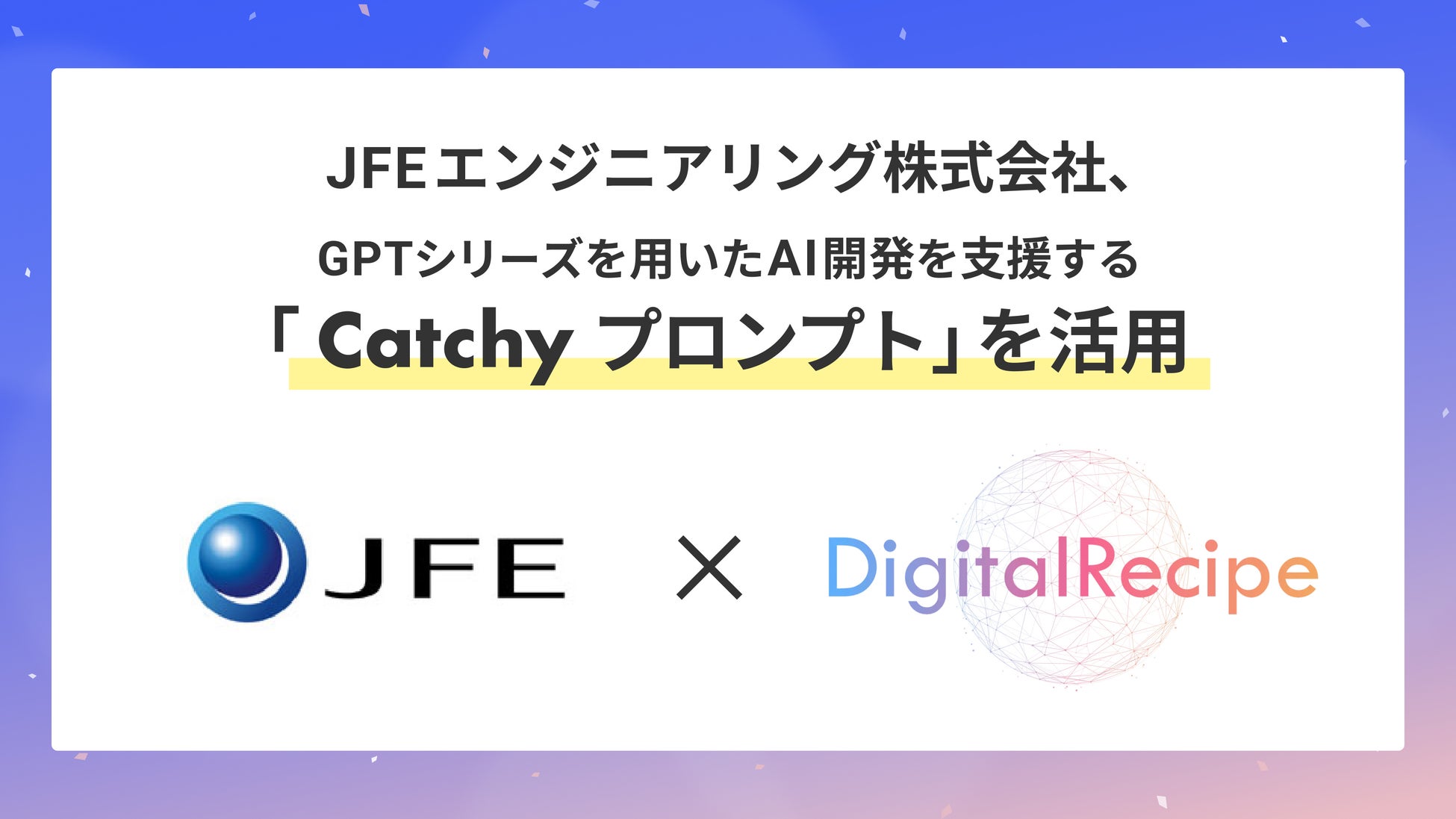 「AIと共に生きる未来をつくる」をビジョンに掲げ、人工知能の社会実装を実現するAI事業創造に取り組む株式会社デジタルレシピ(本社:東京都渋谷区、代表取締役:伊藤新之介、以下 デジタルレシピ)は、JFEエンジニアリング株式会社(代表取締役社長:福田 一美、本社:東京都千代田区)に対しAI開発を支援する「Catchy プロンプト」を活用し、実証実験を実施いたしました。