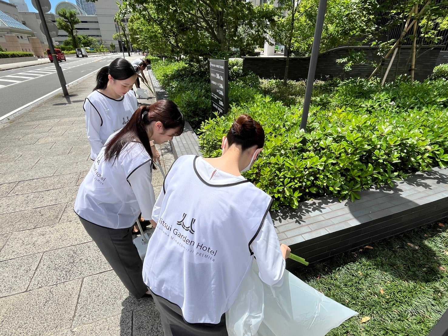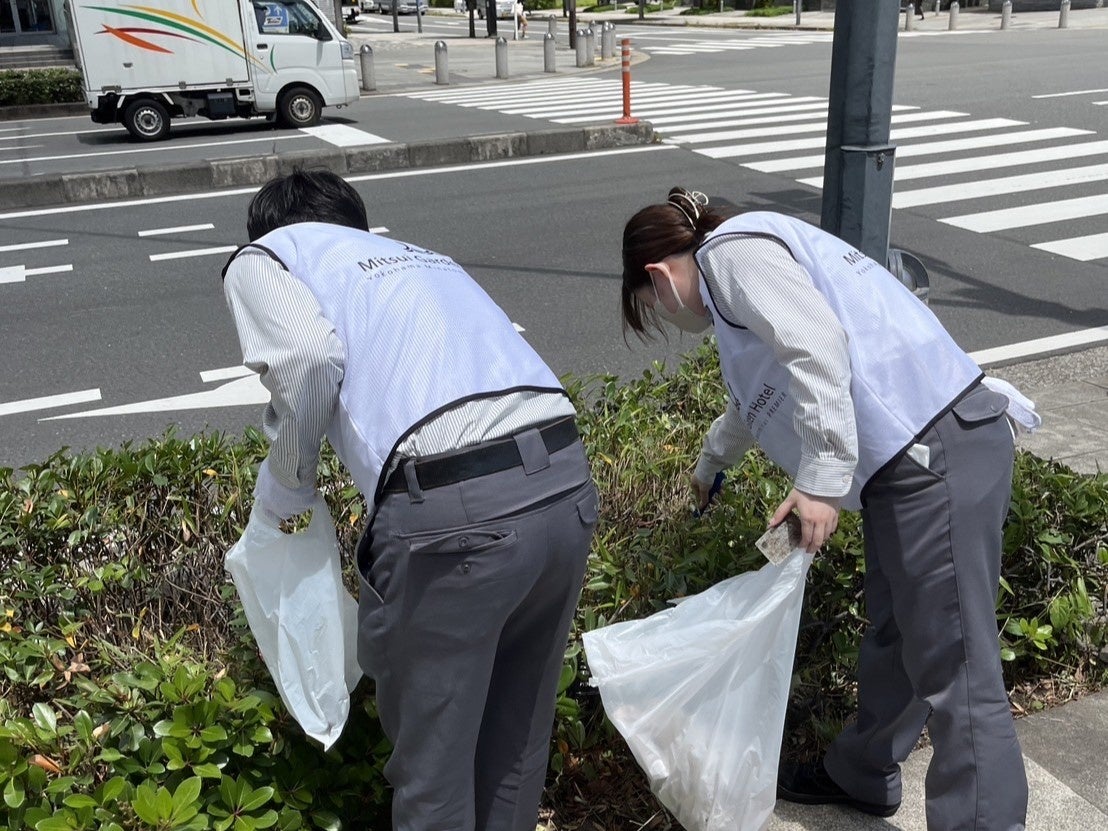 「ごみゼロ運動」と称し、宿泊、レストラン、清掃スタッフ各部門のスタッフが集まり、ホテル周辺の清掃活動を定期的に行っています。