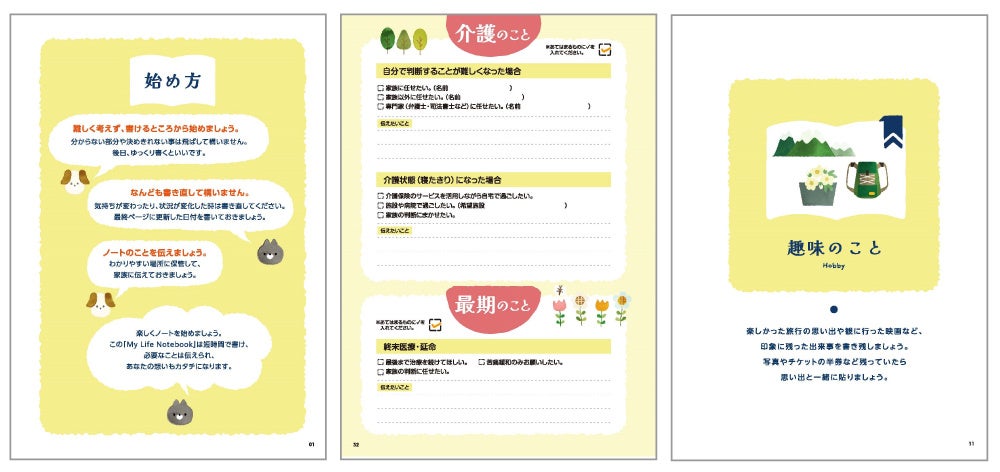 これまでお客様からご相談いただいた内容や、終活についてのお悩みなどを反映して、デザインだけでなく内容を全てリニューアル!時代に即した必要な情報や、ご自身の歴史、いざという時にご家族や大切な方にお願いしたいことなどを、見やすくまとめられるノートになりました。