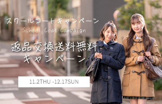 ・期間中は、カンコーオンラインショップでご購入いただいたスクールコートの返品交換にかかる送料が無料になります。