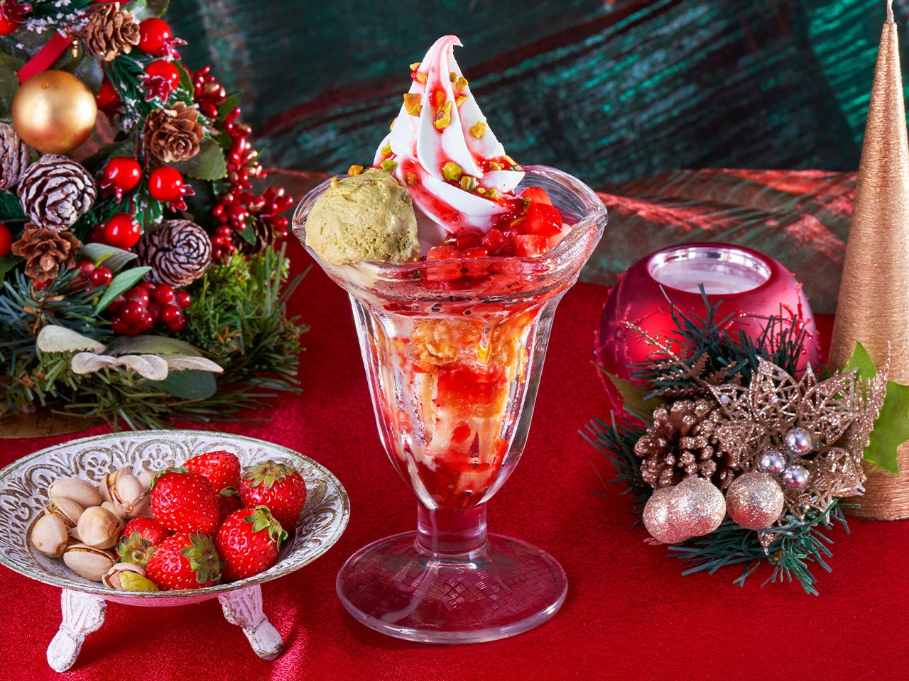 【ストロベリー×ピスタチオがクリスマスらしい、煌びやかなパフェも同時発売!】