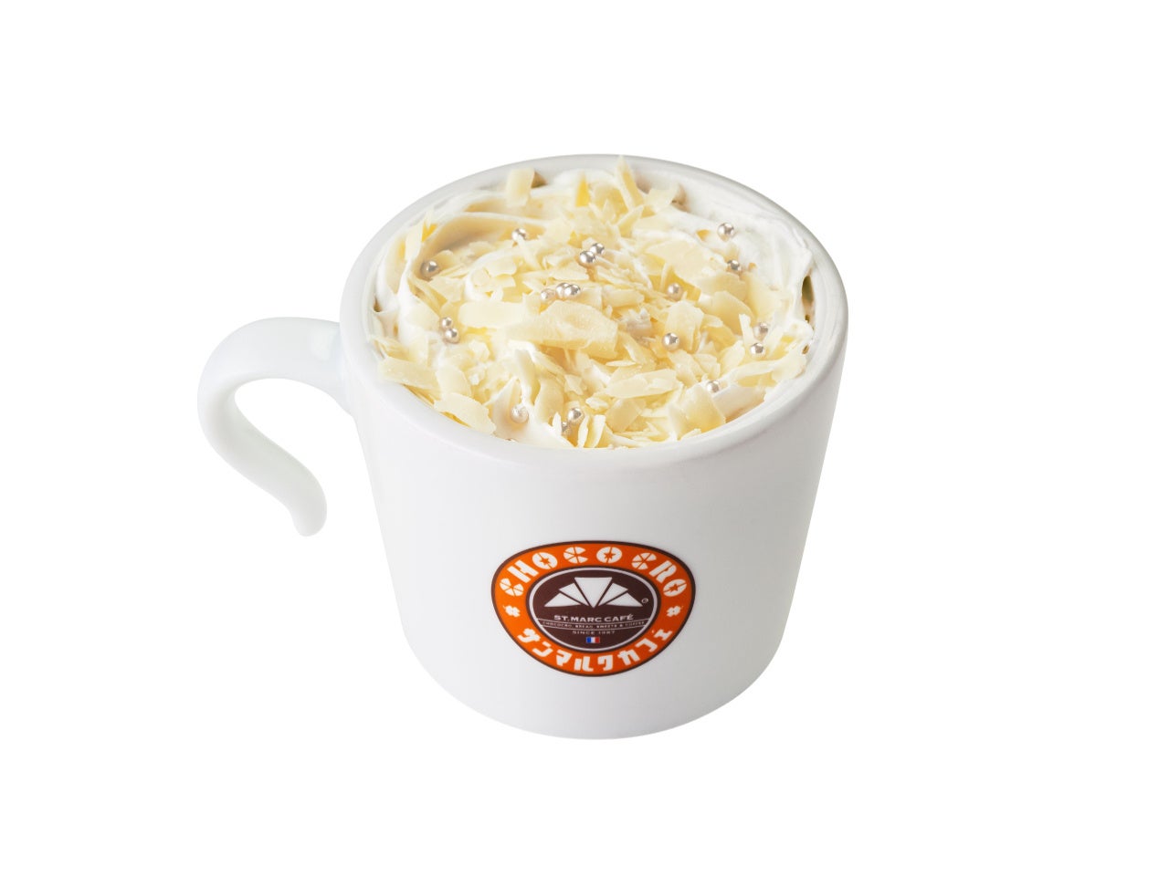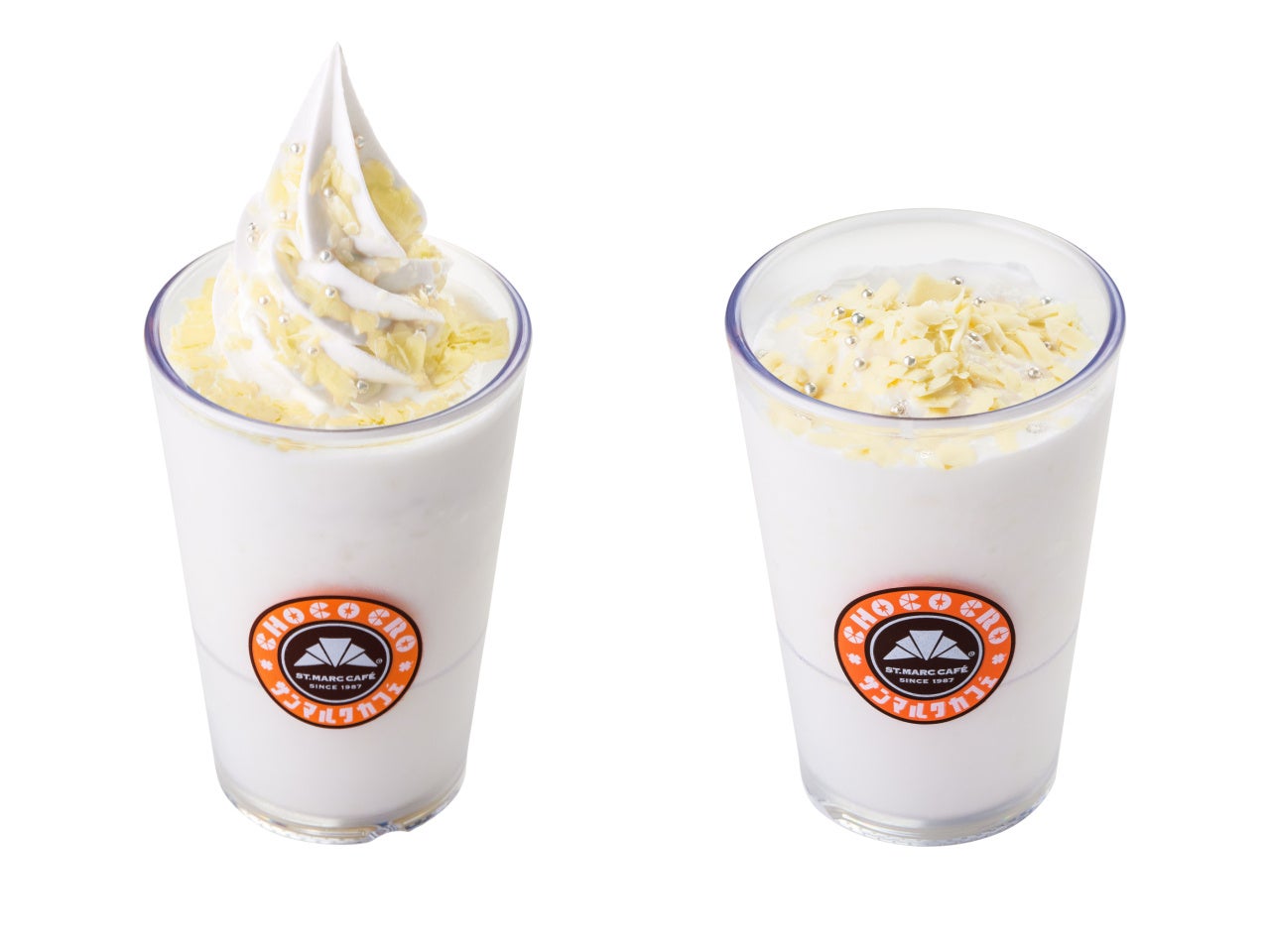 「パールホワイト スノーチョコレートスムージー」は、ホワイトチョコレートとミルクが織りなすクリーミーな味わいが特徴のスムージーです。今年、創業以来初のリニューアルを遂げたサンマルクカフェオリジナルのソフトクリームをたっぷりと絞り、さらにその上から削りホワイトチョコレート、銀色に輝く砂糖菓子“アラザン”をトッピングしました。真っ白で洗練された、見た目も食感もお楽しみいただける商品です。