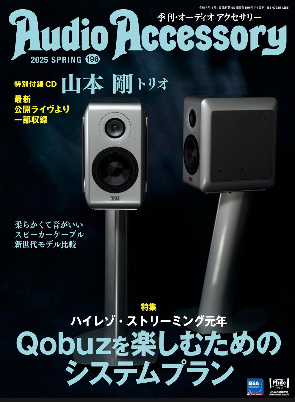 株式会社音元出版(本社:東京都千代田区、代表取締役社長:風間雄介)は、高音質再生を追求するピュアオーディオの専門誌「オーディオアクセサリー」の最新 196号を、2月25日(火)に発売致しました。昨年秋に日本でスタートした話題のハイレゾ・ストリーミングサービス「Qobuz(コバズ)」。その導入ガイドと、5人の評論家が提唱する10のシステムプランの音質レポート、さらにLANケーブルなど周辺オーディオアクセサリー情報をお届けしています。特別付録は、ジャズ・ピアニスト 山本剛さんの公開ライブ録音を音源とするCD。豪華な内容の1冊を、ぜひご覧ください。