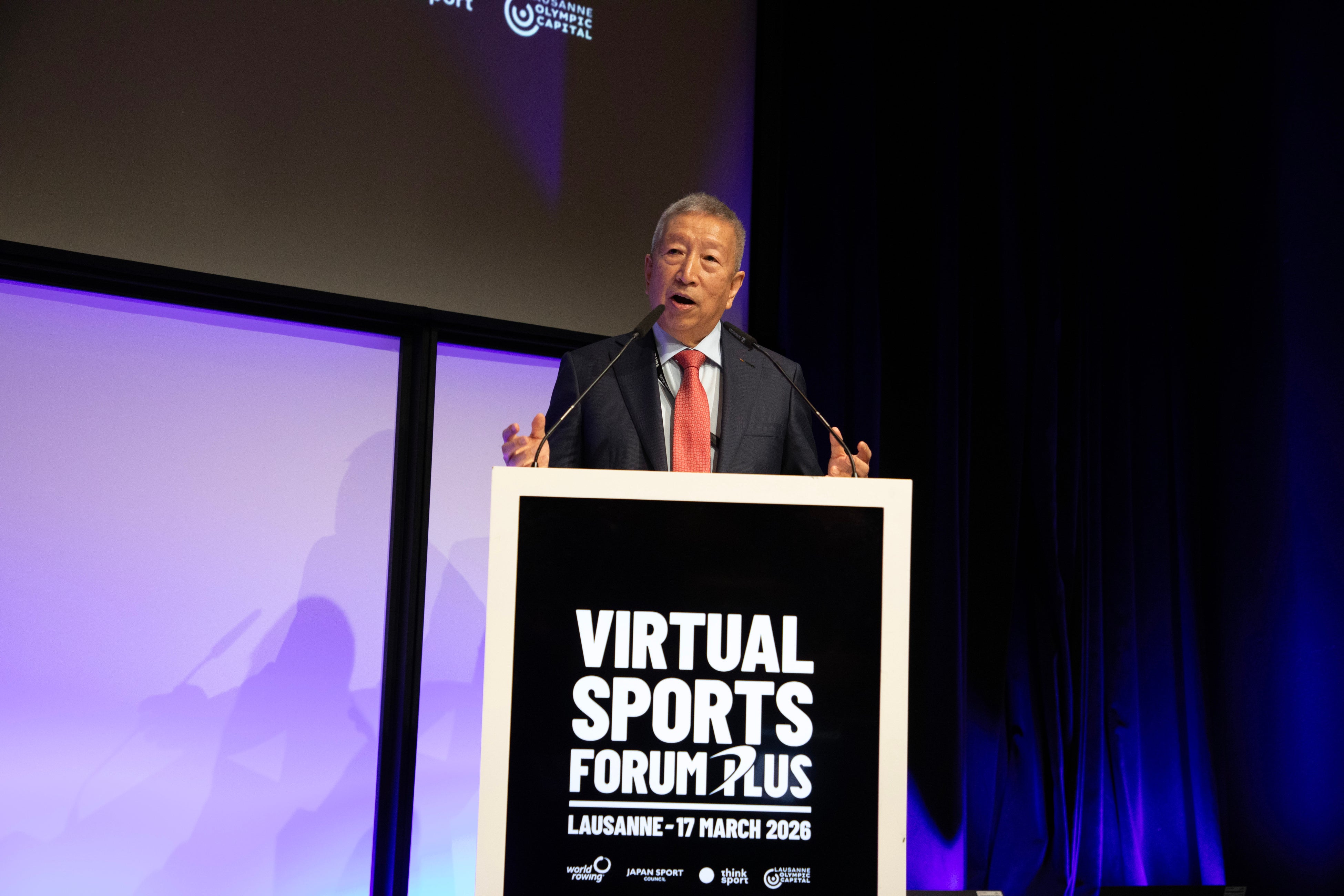 「バーチャルスポーツフォーラムを2年連続で開催し、東京2020大会から5年という節目の年に、オールジャパンで積み重ねてきた成果を、ここローザンヌにおいて「フォーラムプラス」へと発展させることができ、大変嬉しく思います。世界のスポーツリーダーが集結したことで、バーチャルスポーツの持つ大きな可能性が改めて確認され、共有知も一段と深化しました。今後は、この機運を国際的な連携枠組の拡大へとつなげ、ハイパフォーマンス領域で培われた知見をライフパフォーマンスの分野へ幅広く応用し、地球規模の課題解決に貢献してまいります。そして、ワールドローイングとともに、国際戦略パートナーシップを一層強化してまいります。」