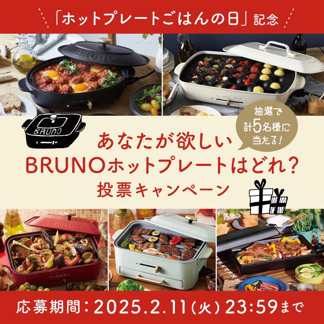 2月2日の「#ホットプレートごはんの日」を記念して、BRUNOが展開する5種のホットプレートが計5名様に当たるプレゼントキャンペーンを開催!