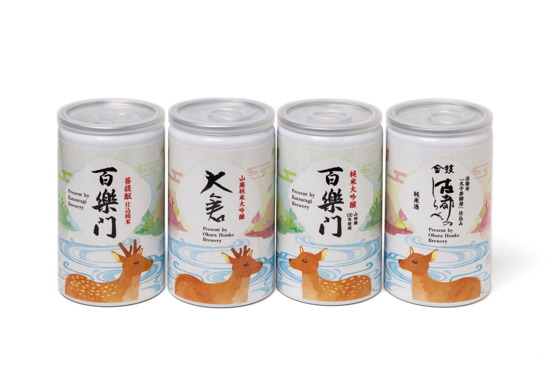 今回は、奈良の日本酒を取り扱うもも太郎様にご協力いただき、奈良県の「葛城酒造(奈良県御所市)」「大倉本家(奈良県香芝市)」とコラボ。計4種の日本酒ミニ缶を企画しました。