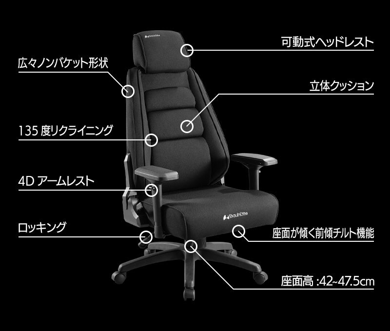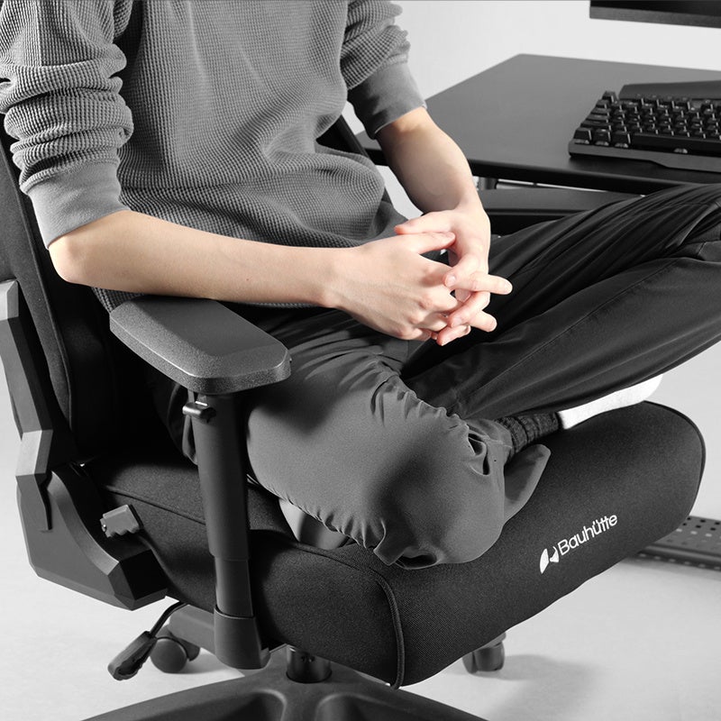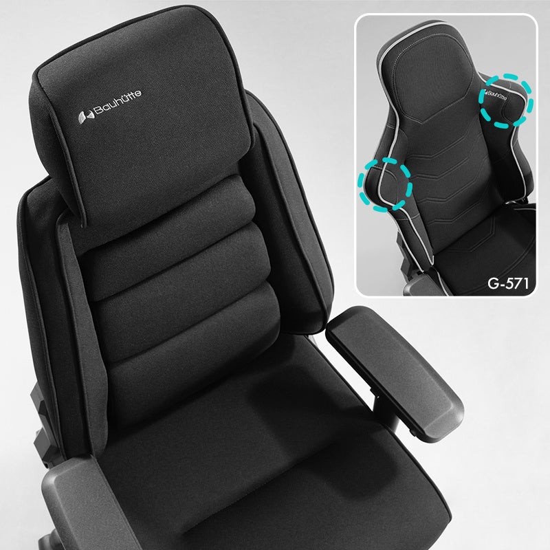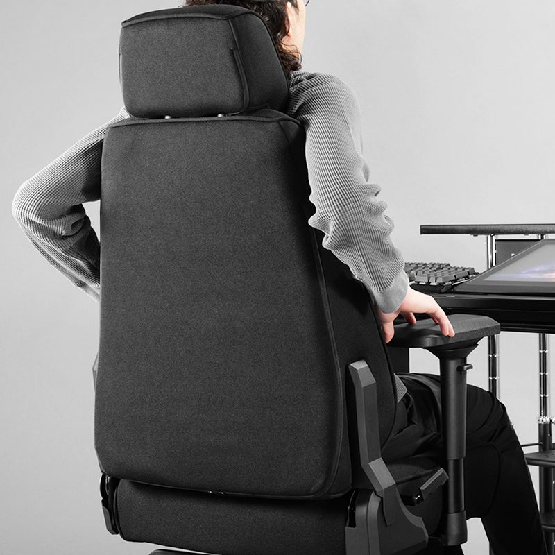 また、背面に備えられた3つのクッションが耐圧を分散し、腰・背中にかかる負担も軽減。"戦う"姿勢のみならず休息時間もサポートする仕様です。