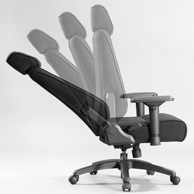 背もたれは最大135度までリクライニング可能。激戦で疲れた身体をゆっくりと預けられます。さらに、首を支えるヘッドレストには、5段階での角度調節ができるチルト機構を搭載。リクライニング時の姿勢や体格に合わせて"ちょうどいい角度"に設定できます。