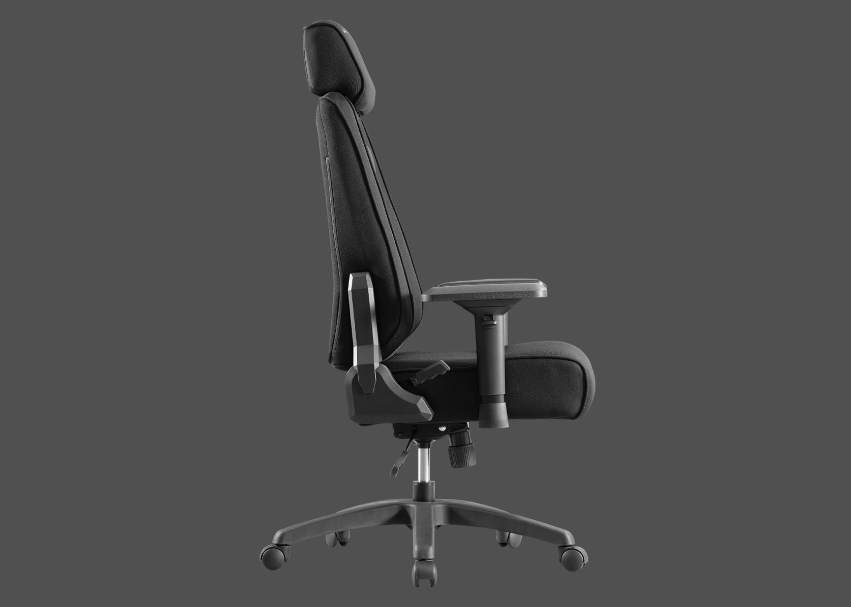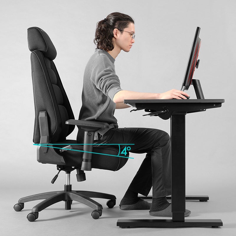 上半身が約4°前傾するチルト機能。足をしっかり床に付けられるようになり、腰へ一点集中しがちな荷重を分散し、下半身全体でしっかりと身体を支えられる仕様です。キーボードやマウスに手を伸ばす動きがスムーズになり、反応もよりダイレクトに。集中を妨げない、そっと背中を押してくれるようなフィット感にこだわりました。