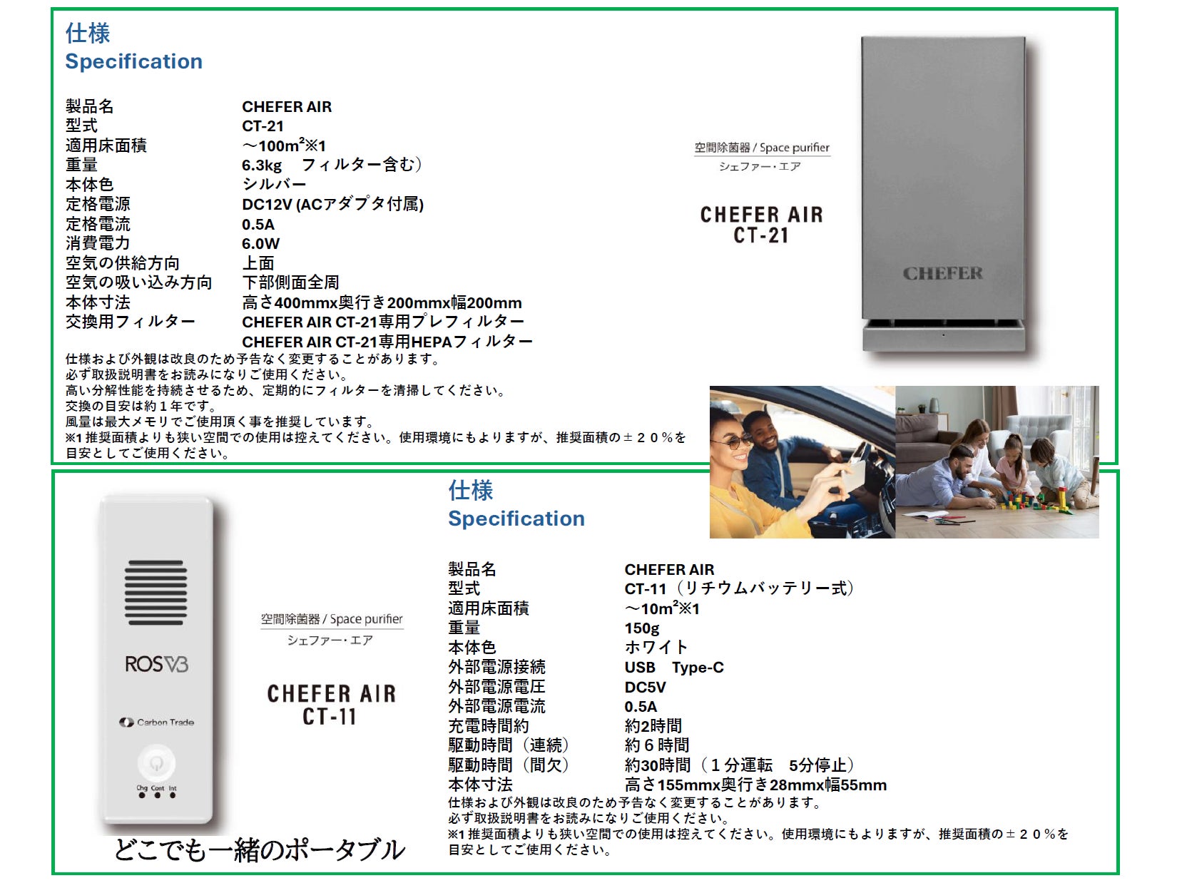 空間除菌器「CHEFER AIR」は化学物質や薬品等を一切使用せず、ウイルス、細菌、カビ、ニオイ等を