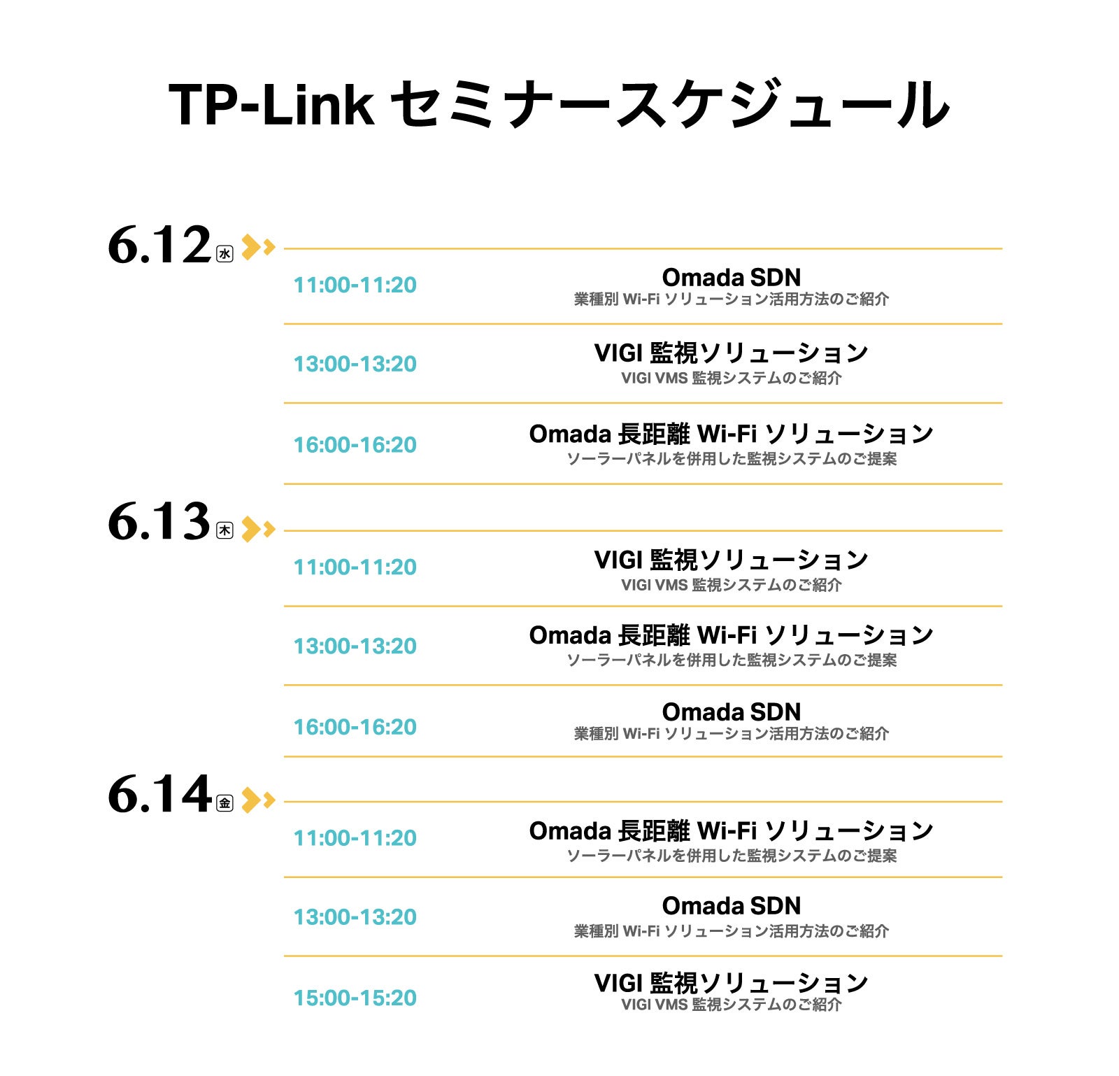 当日は、ブース内セミナーにて、進化し続ける「Omada」と「VIGI」の最新技術&活用方法をご紹介させていただきますので、是非ご参加ください。