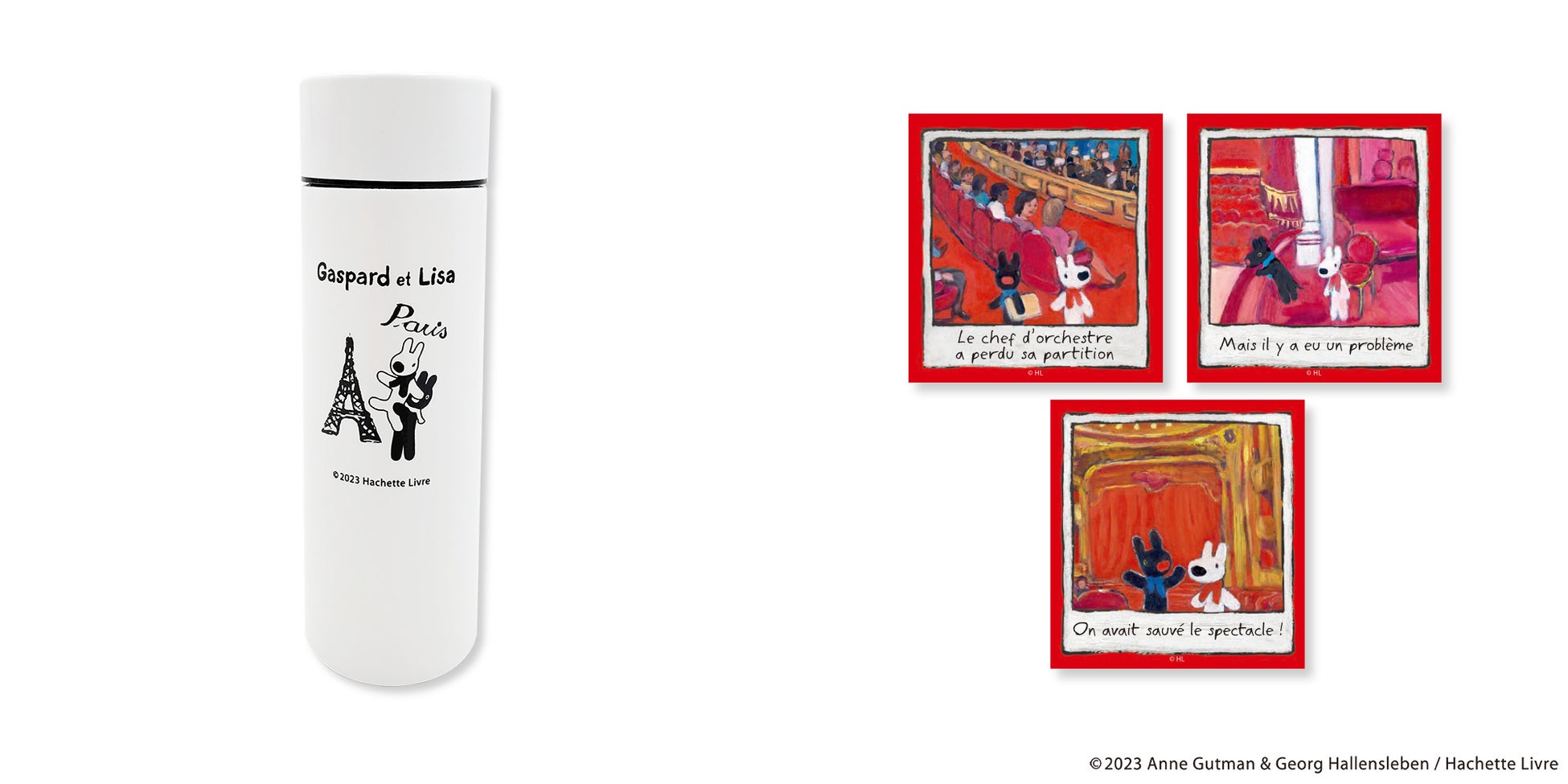 10月20日(金)より『Gaspard et Lisa BOOK STORE』フェアを全国の一部書店にて開催いたします。このフェアでは、シリーズ最新作「リサとガスパール オペラざへいく」のイラストを使用した書店限定グッズを多数発売いたします。豪華絢爛なパリのオペラ座を舞台にしたキュートなふたりの物語より、初めてシリーズでグッズを展開しております。商品ラインナップは、ポケットサーモボトル、ステッカー3枚セット、ミニタオル、ミニフレームマグネット(全2種)、3連メタルキーホルダー、ブック型付箋、アクリルペンスタンドの全7アイテムです。