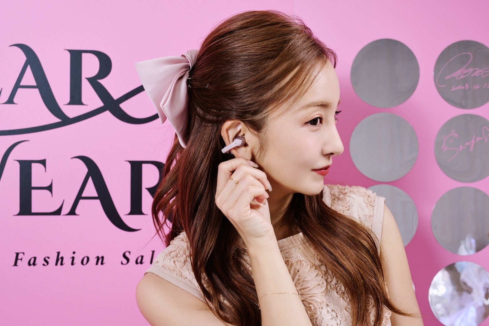 板野友美さんが登壇!「音漏れが少なく、イヤカフ型なので耳が痛くならないのがお気に入り」と笑顔でコメント