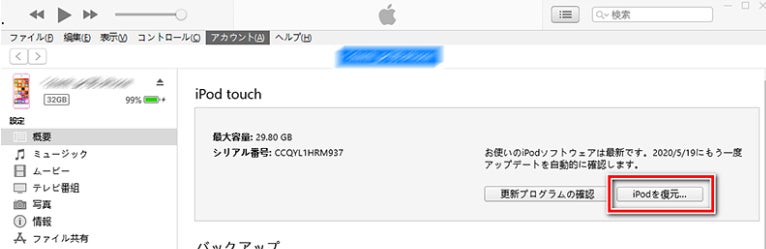 Step3:「概要」にある「iPodを復元」をクリックします。