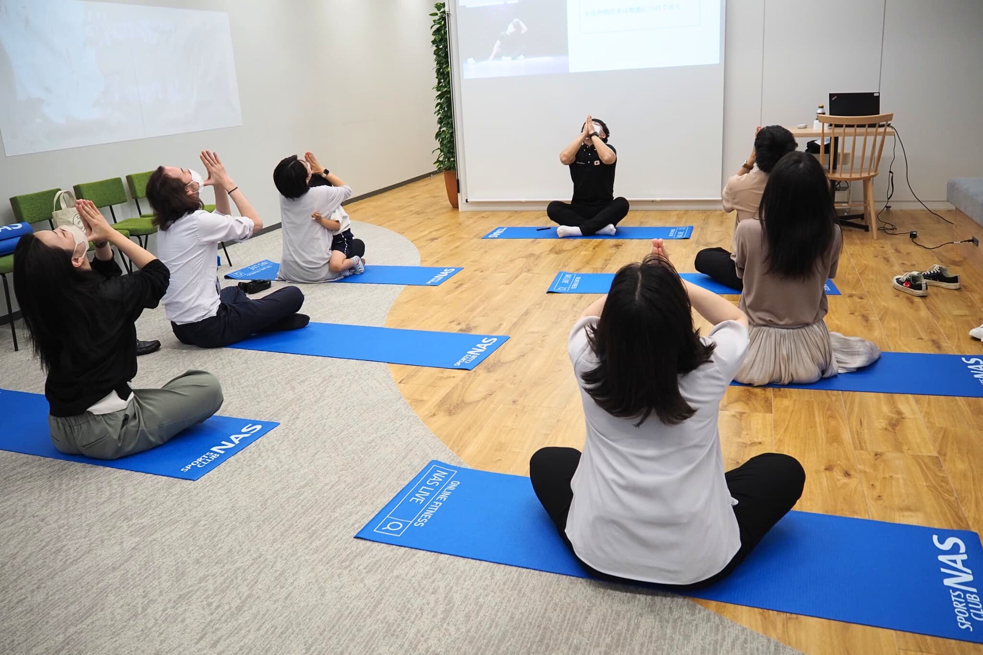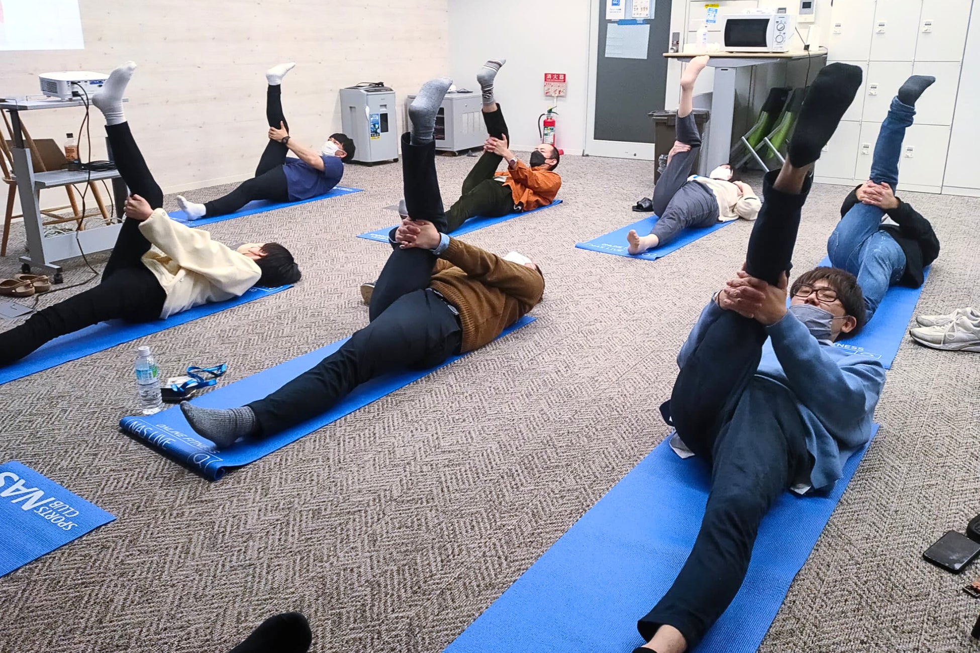 フィットネス講座は弊社アスリート社員が講師を担当し、お昼時間、業務後、オンライン配信など様々な方法で社員の健康促進に努めています。社員のみでなく社員のお子様も一緒に参加するなど、全員が無理なく実施できる内容で取り組みを行っています。