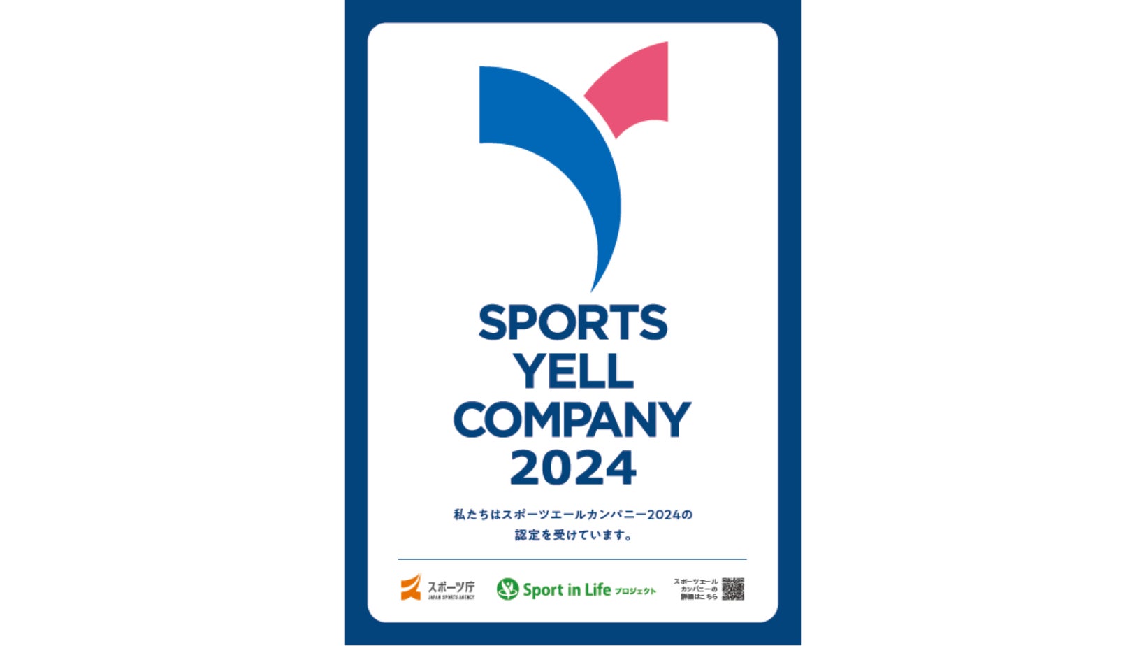 2024年1月23日(火)、スポーツ庁より、従業員の健康増進を目的に積極的にスポーツ実施に取り組む企業として、「スポーツエールカンパニー2024」に初認定されました。