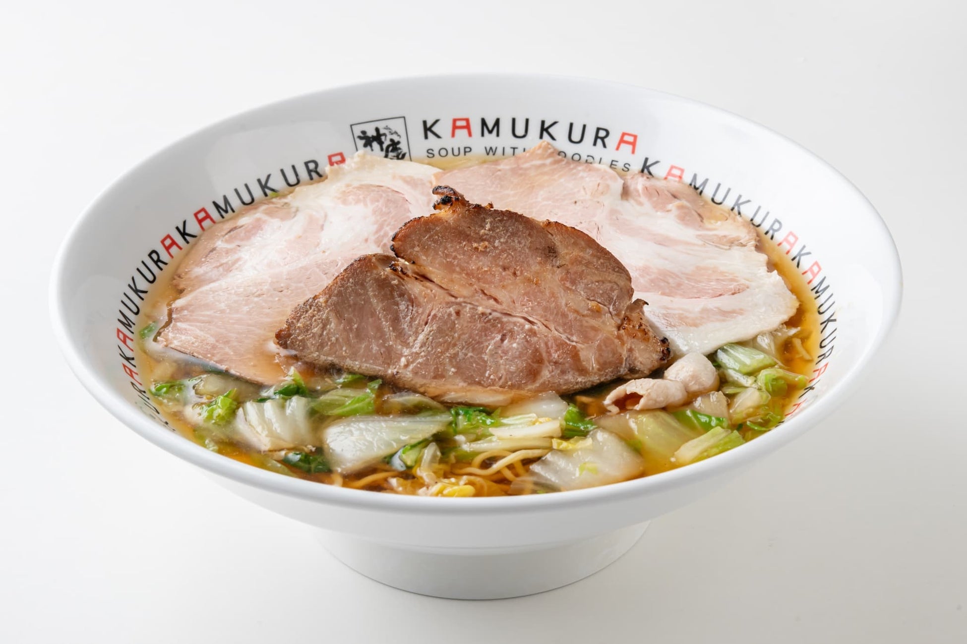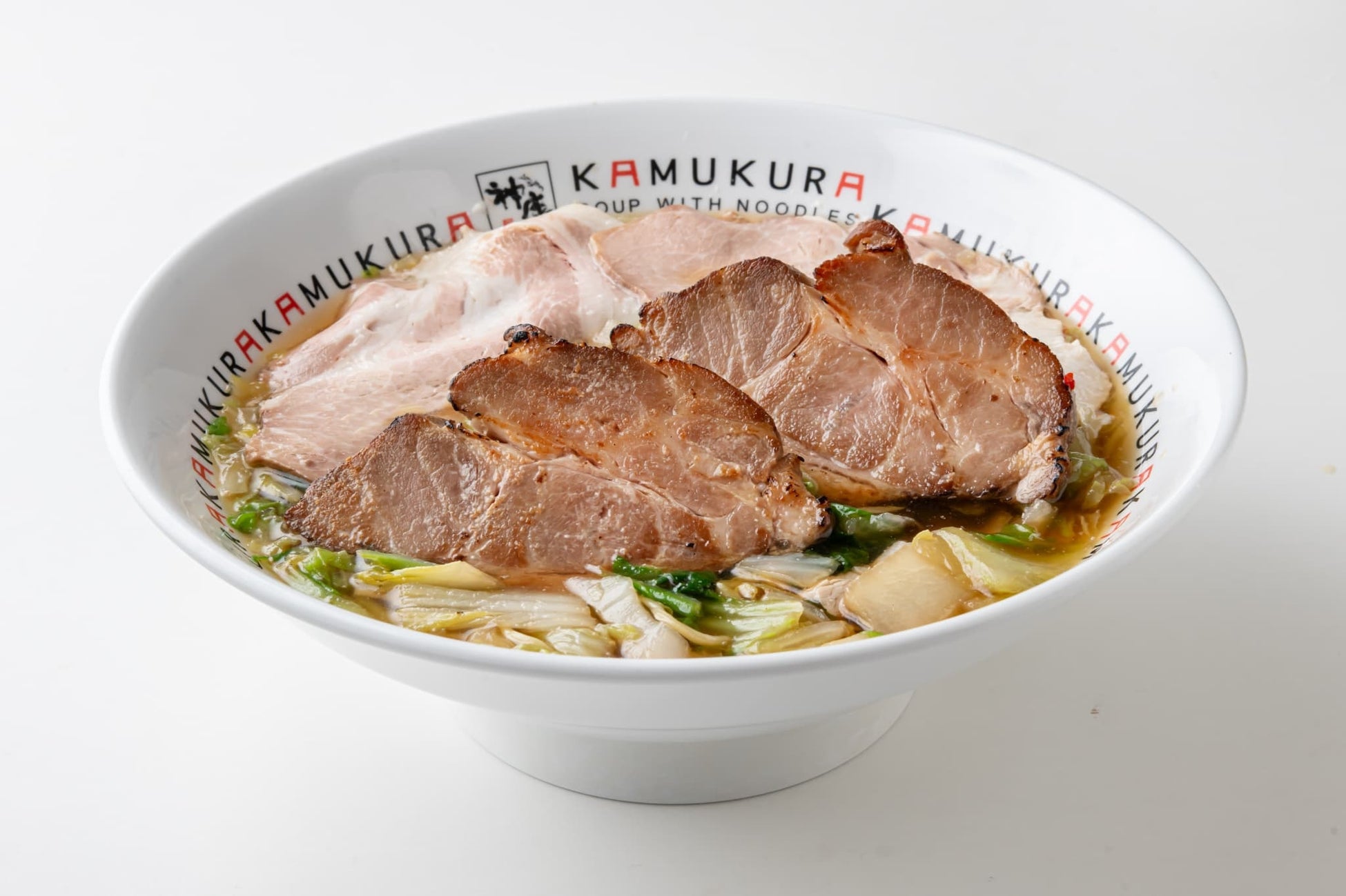 厚切りイベリコ豚チャーシューと肉汁が溶け出した黄金スープが、幸福感を演出する特別な一杯、完成。