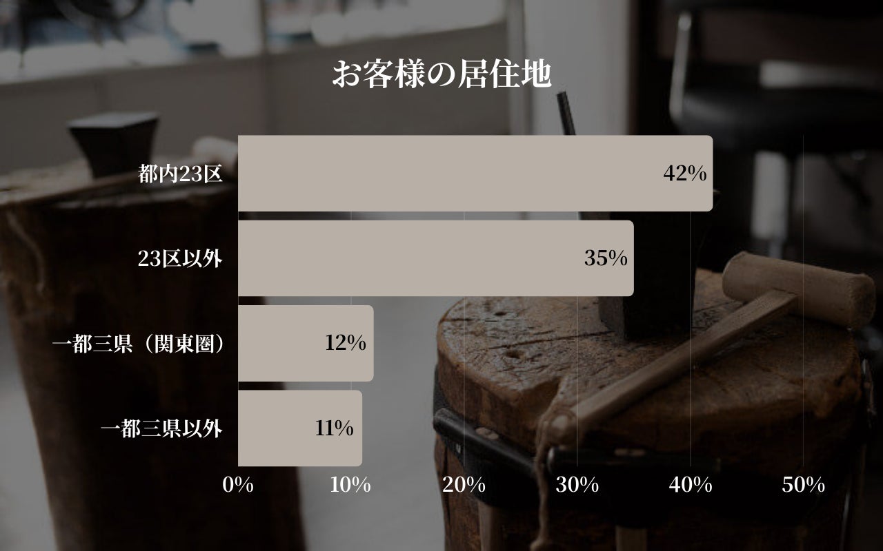 居住地別では、「都内23区(41.5%)」と「一都三県(34.9%)」を合わせ、約76%のお客様が関東圏から来店されています。特に下半期は都内23区内からの利用がさらに伸び、代官山というトレンド発信地において、日常の延長線上で楽しめる「特別なワークショップ」としての認知が広がりました。また、一都三県以外からも年間を通して約11%の来客があり、観光のハイライトとして選ばれる目的地型スポットとしての側面も持ち合わせています。