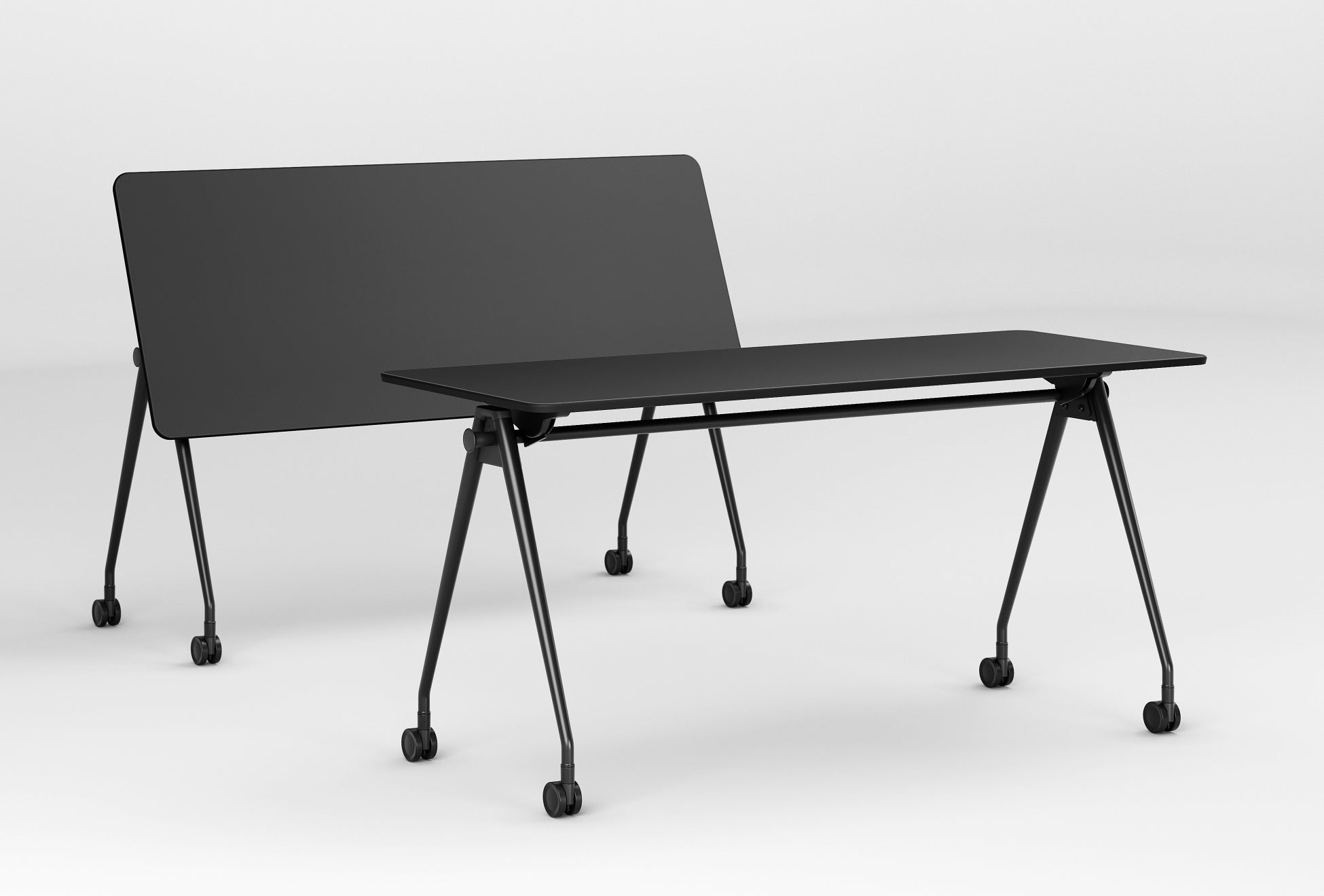 「アレッテ」は、固定テーブルのようなシンプルなデザインを保ちながら、機能性を兼ね備えたミーティングテーブルです。決まった向きがない脚のデザインで、天板のどちらからも使用できます。天板はレバー操作で簡単に水平と跳ね上げを行うことができ、未使用時は天板の向きを変えてネスティングすることでコンパクトに収納が可能です。ミーティングから個人作業まで、さまざまなワークシーンに対応します。