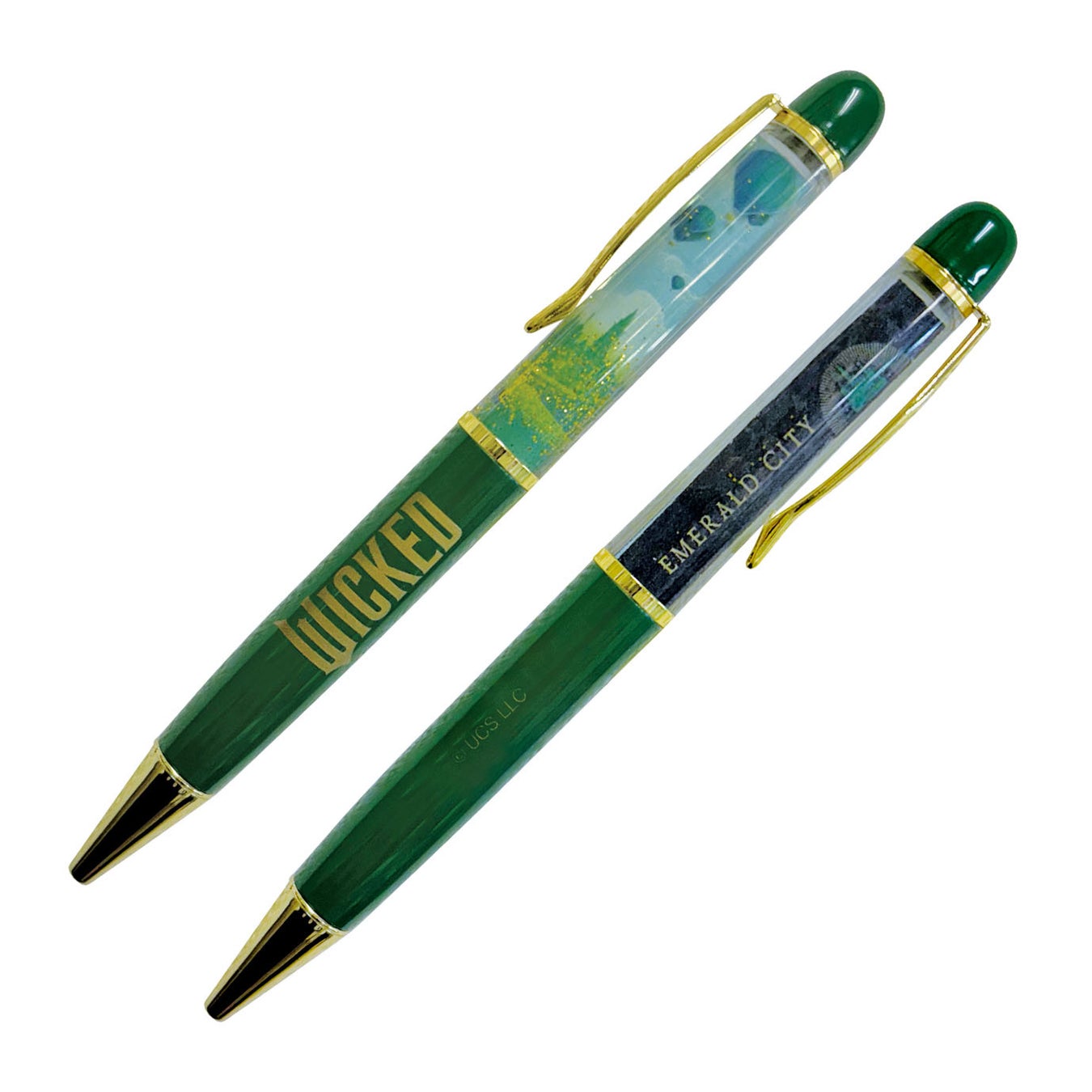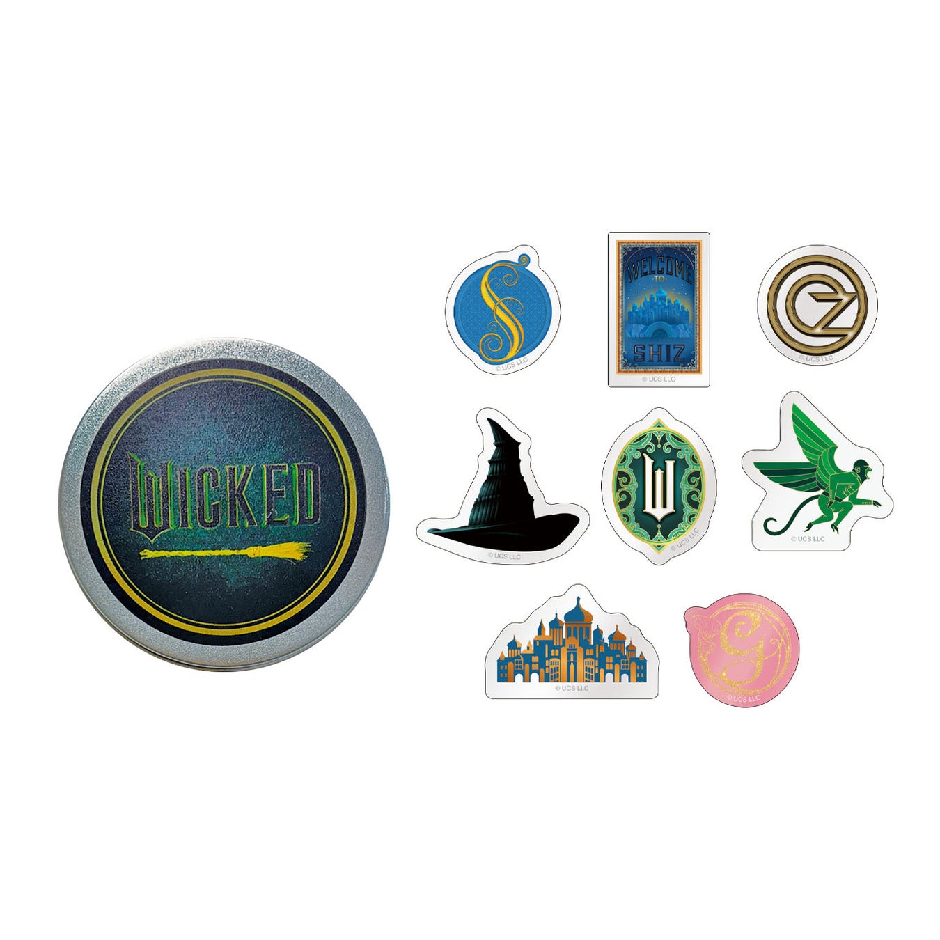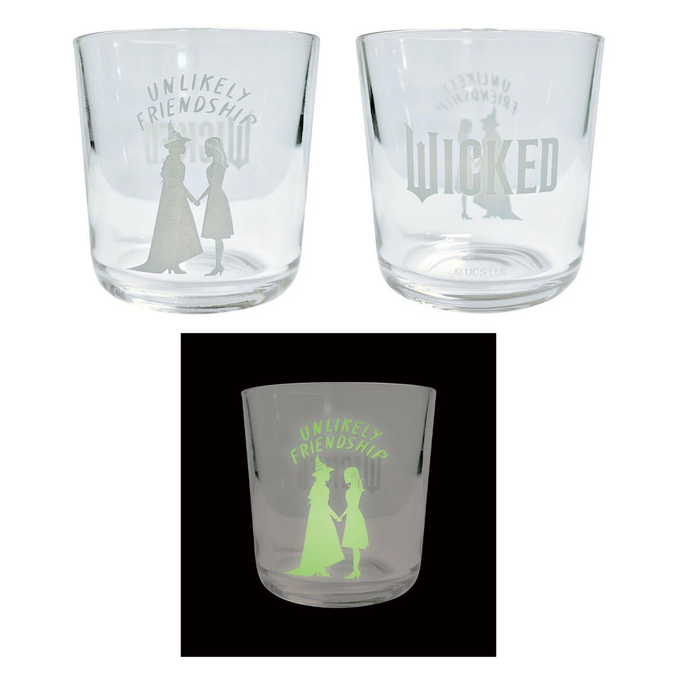 今回発売するイオンシネマオリジナル商品は、主人公エルファバとグリンダが描かれた3Dクリアファイル、二人が通う学校のロゴのチャーム付きヘアゴム、映画を象徴したモチーフが描かれた缶入りステッカー(8種)、オズが司るエメラルドシティ柄のビッグポーチ、手を取り合う二人のシルエットが光る蓄光シルエットグラス、映画のイメージとなる緑色がベースとなったフロートボールペンの6アイテム。いずれも数量限定で販売しますので、ぜひこの機会にお買い求めください。