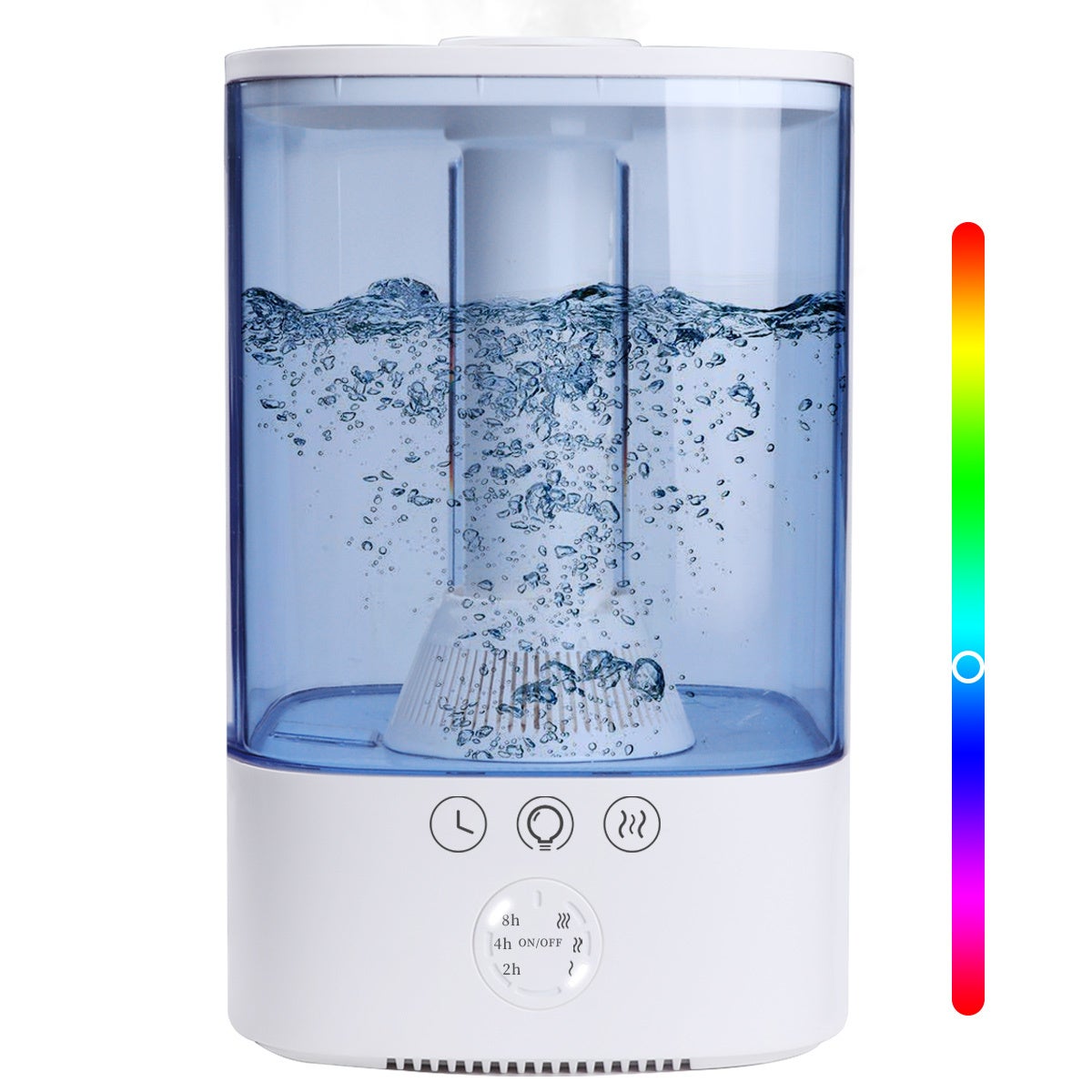 【タイマー機能&睡眠モード&空焚き防止】寝ている間やエアコンをつけている間だけ加湿器を使いたい、就寝時に適した環境を整え、過剰に加湿しすぎてしまわないように、2・4・8Hタイマー機能が備わっています。加湿量ボタンを長押すと、睡眠モードがオンになります。消灯し(電源ランプのみ表示)、加湿量が弱モードで運転します。また、消し忘れて稼働中に水がなくなった場合は、自動で止まるのも安心です。