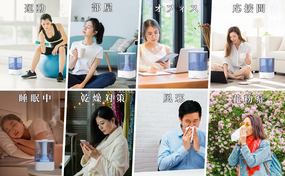 【3段階ミスト量の超音波式&次亜塩素酸水対応】超音波式でミストが熱くならないので、子供やペットがいるご家族も安心して使えます。タッチ操作で、ミスト量は弱・中・強の3段階で調節可能で、部屋の大きさや季節などに応じて選択できます。一方では本製品は次亜塩素酸水対応で除菌一酸化炭素、細菌など有害物質を抑制し、空気を綺麗になります。適切な湿度を保つことは、周りの空気を改善し、花粉症、乾燥などの不快感を緩和し、ウイルス対策にも効果的です。いつでも快適に過ごせる、ゆったりとした室内環境を作ります。