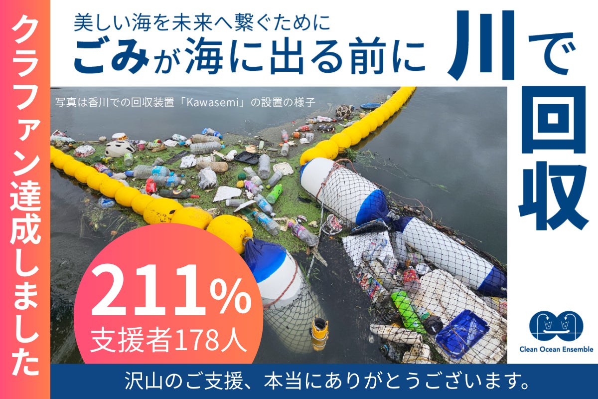 海洋ごみ問題解決に向けて活動するNPO法人クリーンオーシャンアンサンブル(香川県小豆郡小豆島町、代表理事:江川裕基、田中秀典)は、クラウドファンディングサービス「CAMPFIRE」にて実施したプロジェクト「川で止めて、海を変える。日本標準の河川ごみ回収モデルをつくりたい」を2026年1月18日に募集終了いたしました。