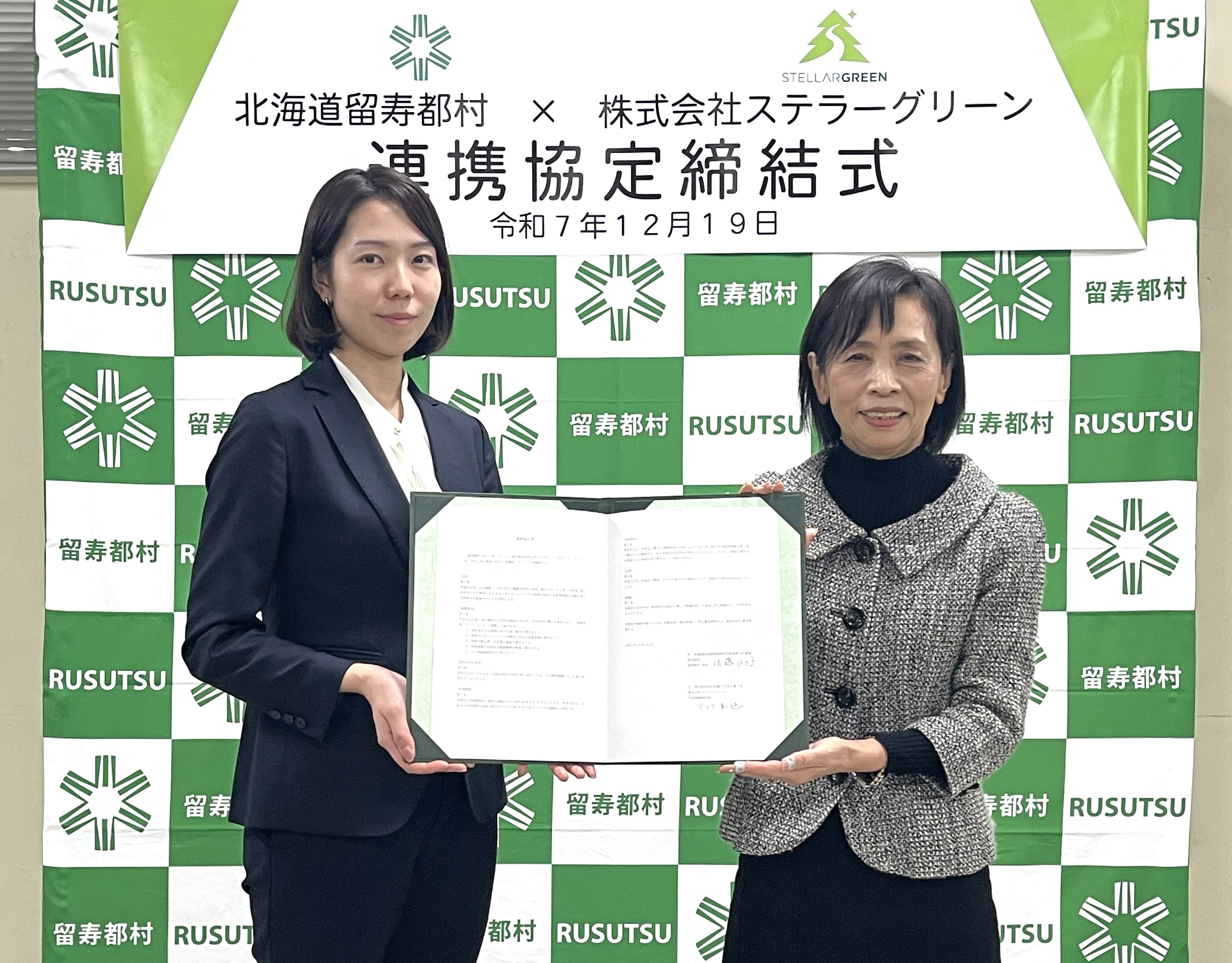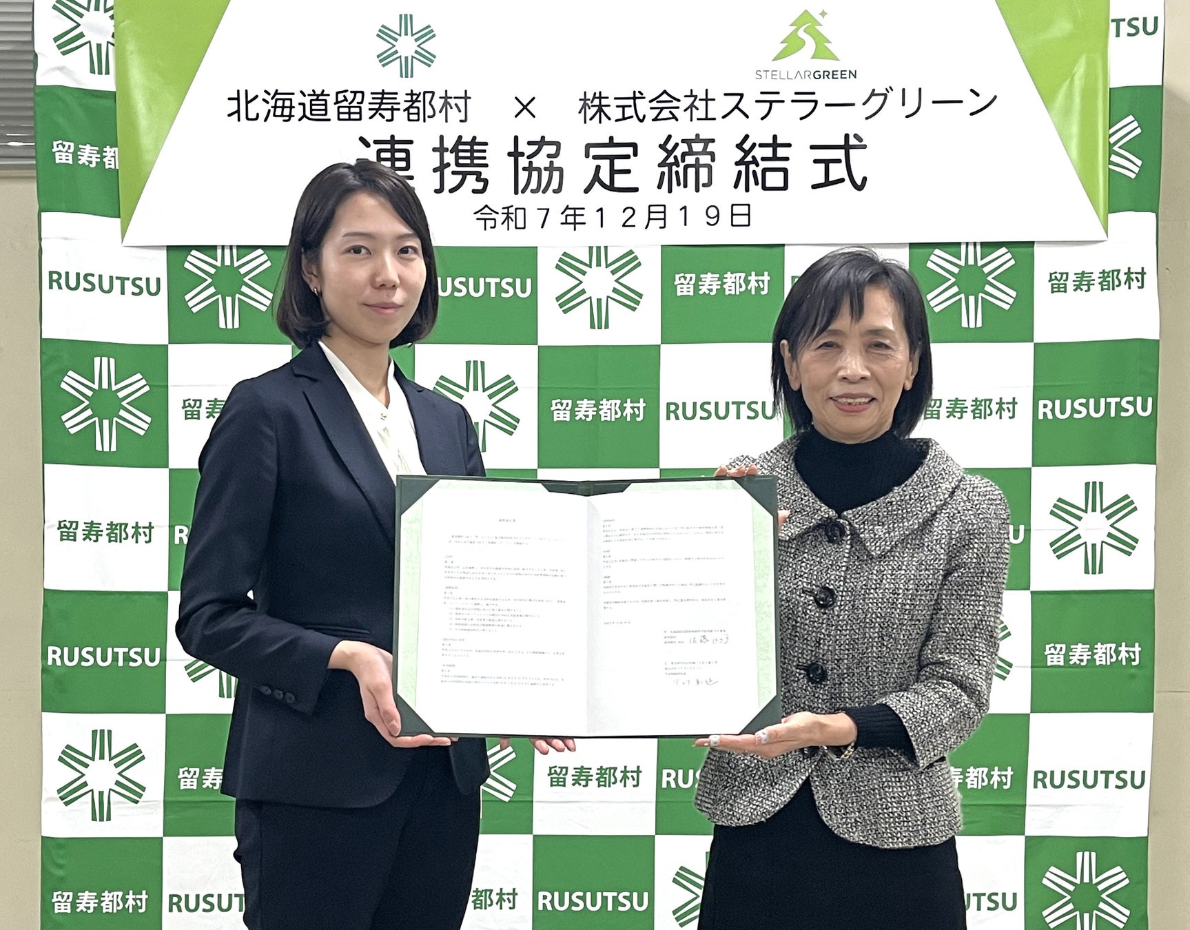 北海道留寿都村(村長:佐藤 ひさ子、以下「留寿都村」)と森林カーボンクレジット創出の支援事業を展開する株式会社ステラーグリーン(本社:東京都中央区、代表取締役社長 兼 CEO:中村 彰徳、以下「ステラーグリーン」)は、2025年12月19日(金)に「カーボンニュートラルの実現に向けた連携協定」を締結しました。