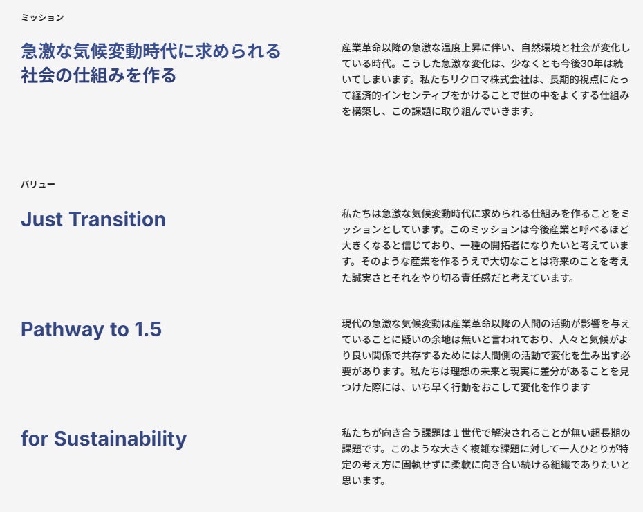「急激な気候変動時代に求められる社会の仕組みを作る」ことをミッションとし、気候変動情報開示のコンサルティングを行うリクロマ株式会社(本社:東京都渋谷区渋谷3丁目27番地13、代表取締役:加藤貴大)は、今後の事業拡大へ向け、採用を強化するため、採用サイトをリニューアルしました。
