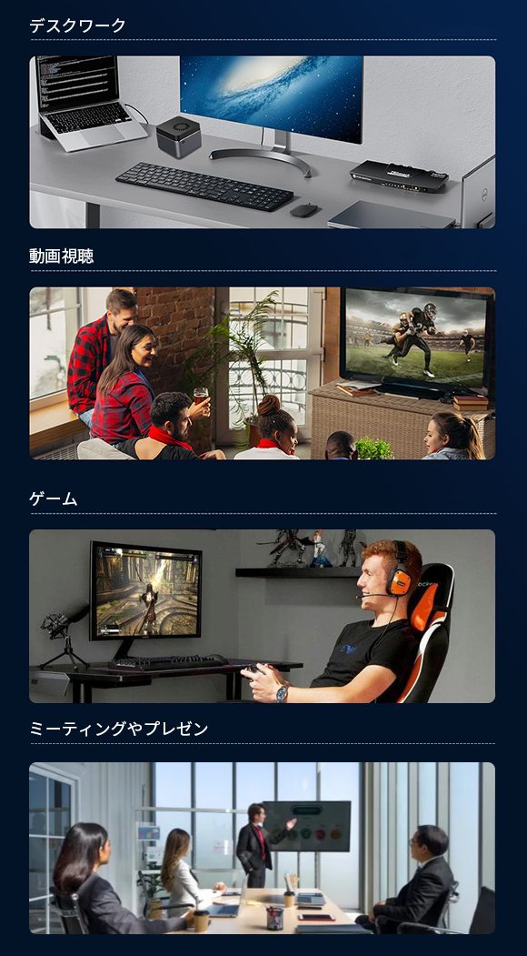 普通のデスクトップPCにも劣らない基本性能を搭載しており、普段のエンターテイメントから、マルチタスクを多用するビジネスシーンまで、様々な場面で大活躍します。