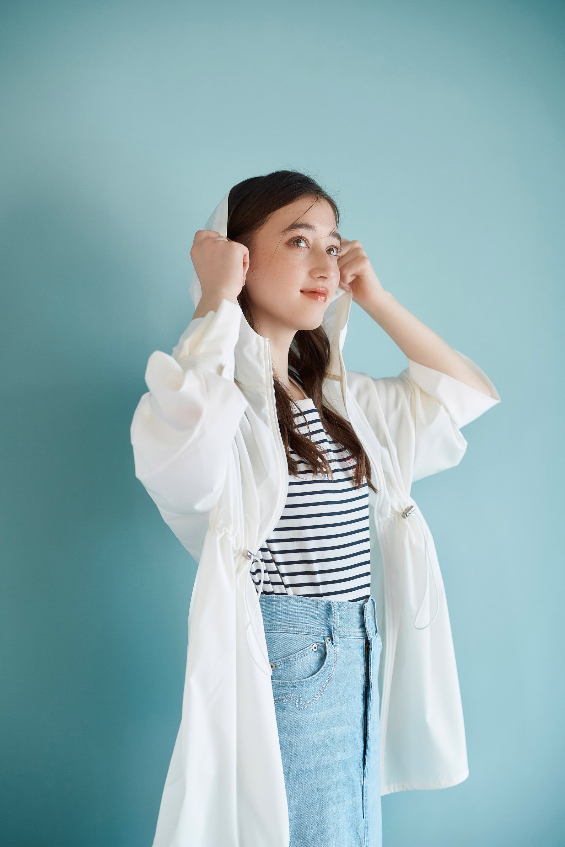 羽織るだけで日焼けを防止できるUVカット機能付きのパーカー。薄くて軽く、透け感のある見た目で涼しげな印象です。袖口はタブの留め方でチェンジできる2way仕様。ヒップが隠れるゆとりあるシルエットで、インナーを選ばず羽織ることが可能です。