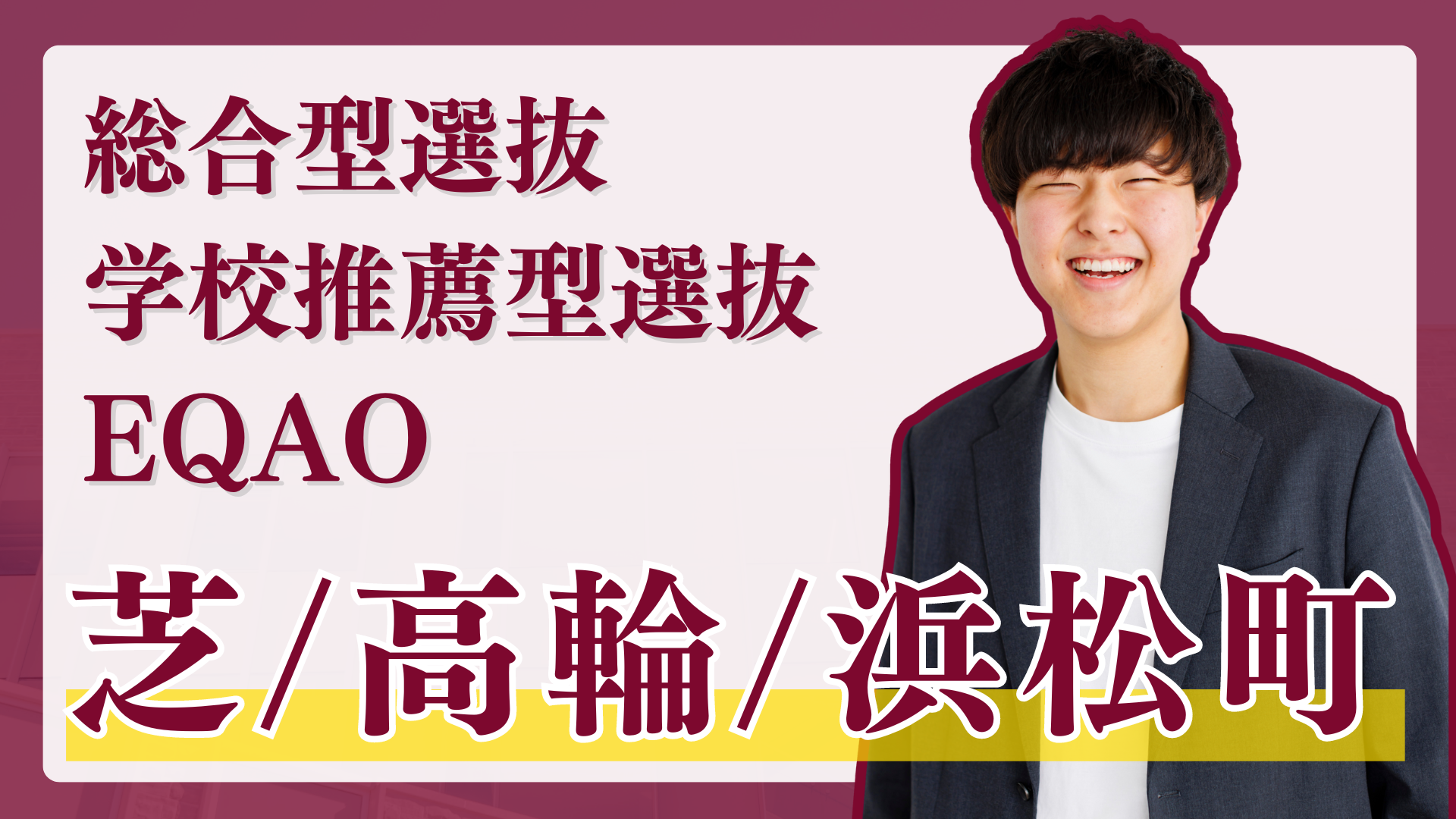 EQAOでは慶応義塾大学、上智大学に総合型選抜入試で実際に合格した講師から、志望校合格までのノウハウをお伝えします!EQAOの芝大門・高輪・浜松町エリアの高校に通う学生を対象とした無料相談は、3/21 に受付を開始します。
