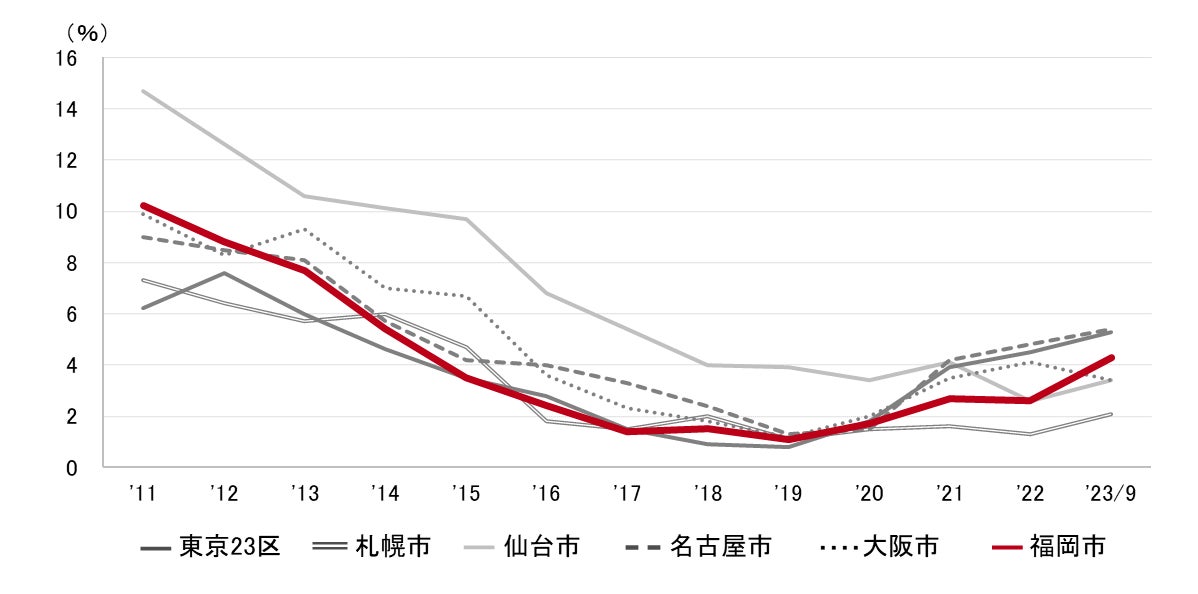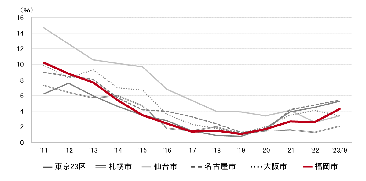 福岡市 全規模ビル 主要エリア 空室率