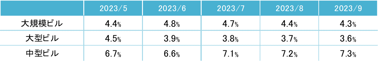 ※大規模ビル:1フロア面積200坪以上、大型ビル:同100坪以上200坪未満、中型ビル:同50坪以上100坪未満
