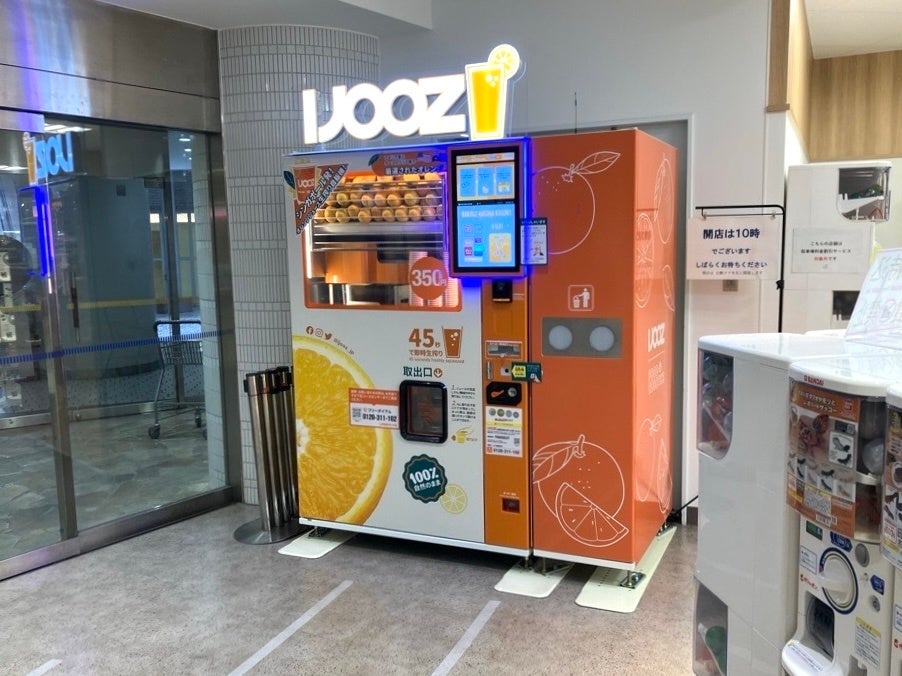 IJOOZのオレンジジュース自動販売機が「セントシティ」のB1F カプセルパーク横で、稼働を開始しました。施設を利用する一人でも多くの方に、手軽に美味しいオレンジジュースを楽しんでいただければと考えています。