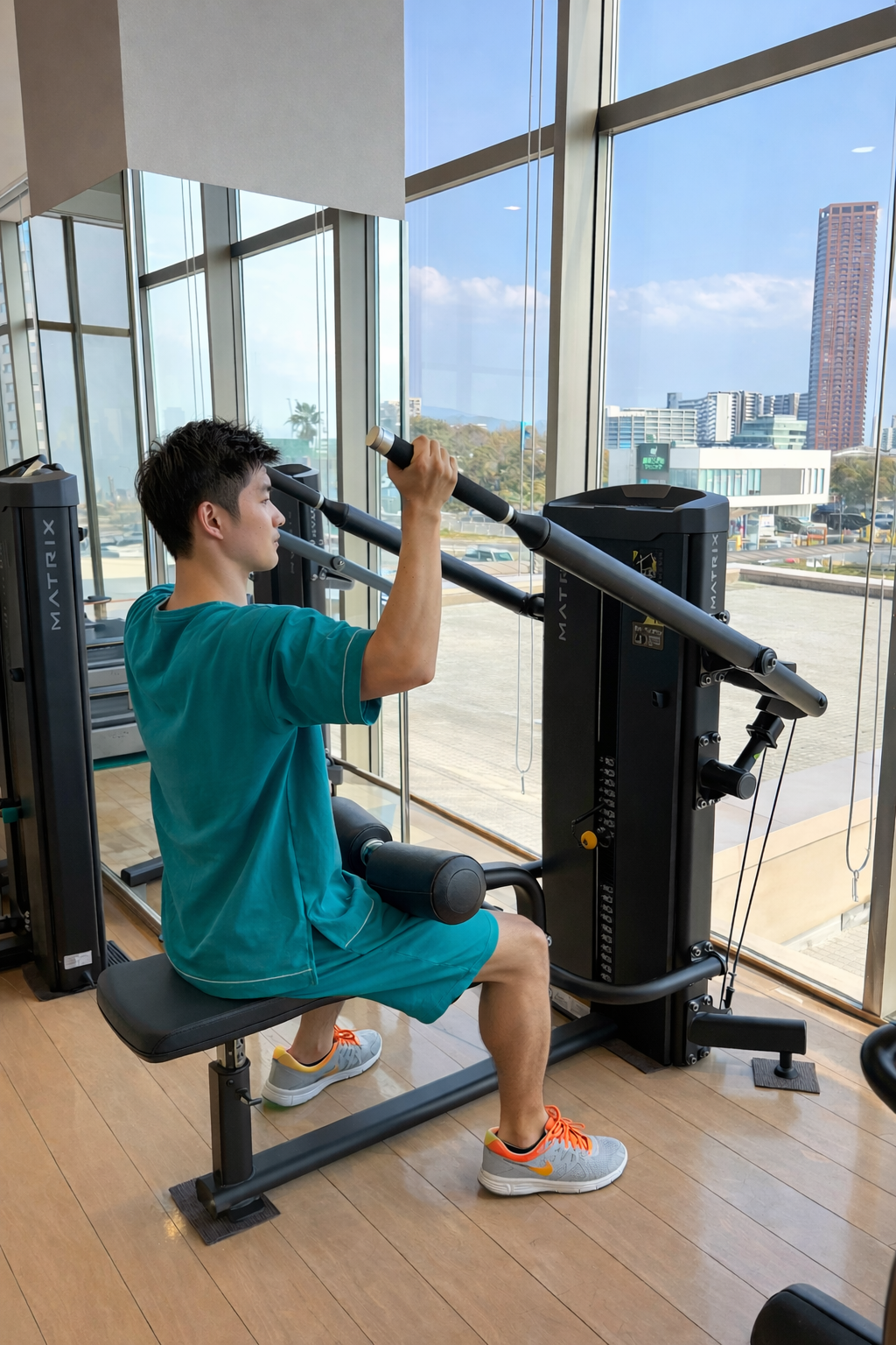 ・ラットプルダウン:背中を中心に、腕の筋肉も鍛えられるトレーニングマシンです。