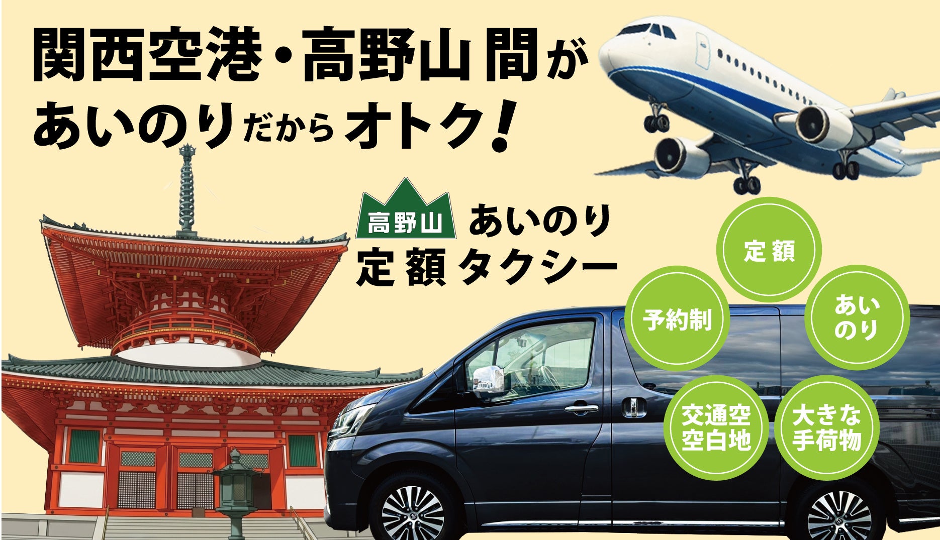 高野山タクシー株式会社(本社:和歌山県伊都郡高野町、代表取締役社長:豊田 英三、以下「高野山タクシー」)は、関西国際空港と高野山地域を直行で結ぶ定額制のあいのりタクシー送迎サービスを、2026年1月15日(予定)より開始します。