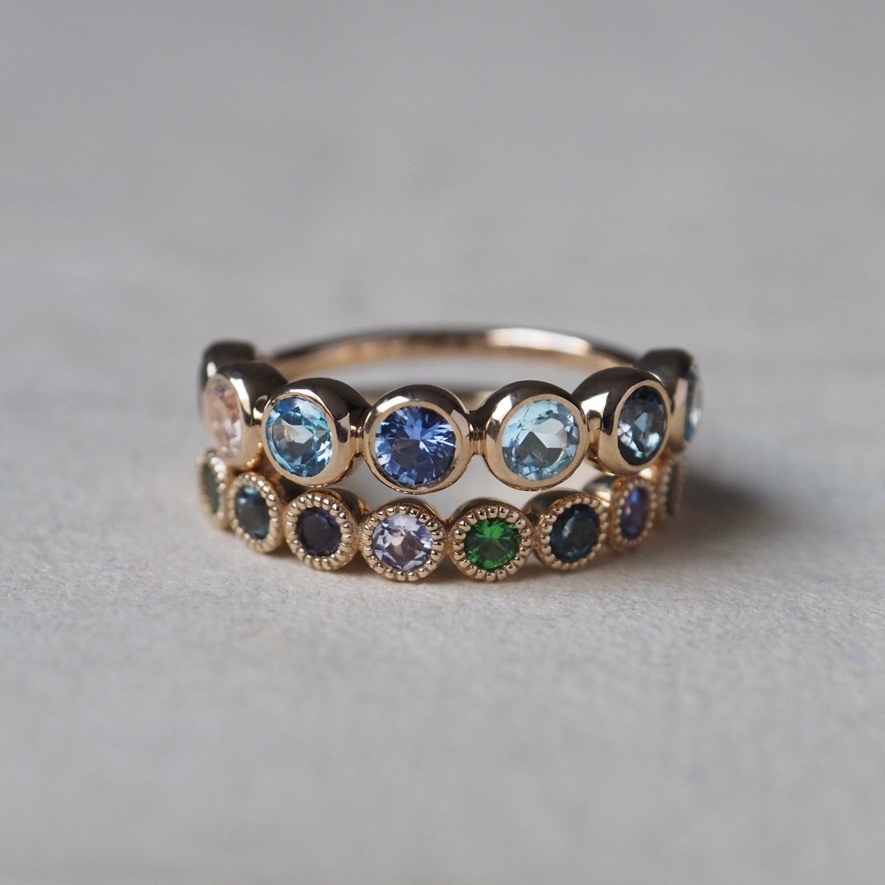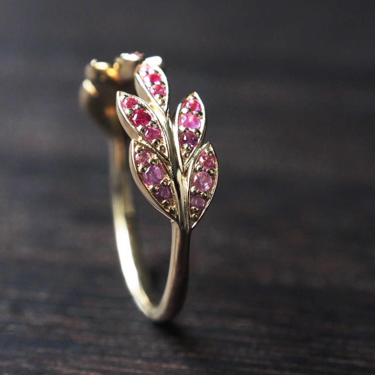1月のトランクショーで発表された『ボタニカル』シリーズ。自然の造形美である植物をそのまま指に宿したような、しなやかでナチュラルなデザイン。大変ご好評につき、2月も新たなデザインでお持ちいたします。規則性がないように見えながら、実は計算されたバランスで配置されたカラーストーンが、自然の美しさを最大限に引き出します。