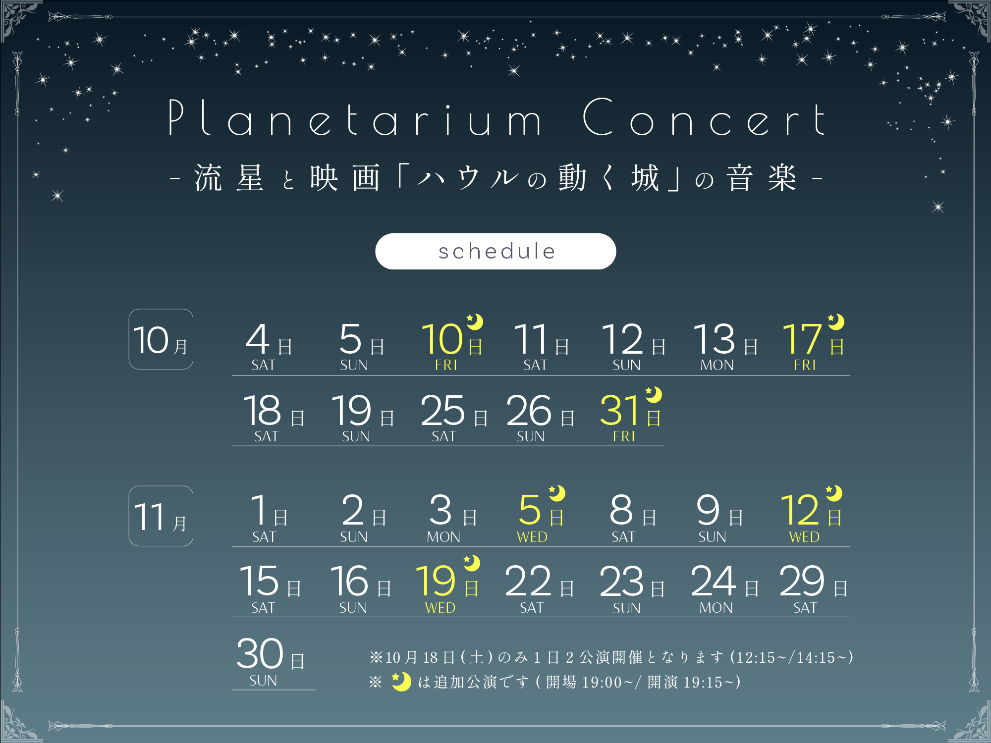 ●【追加公演】『Planetarium Concert -流星と映画「ハウルの動く城」の音楽-』概要●