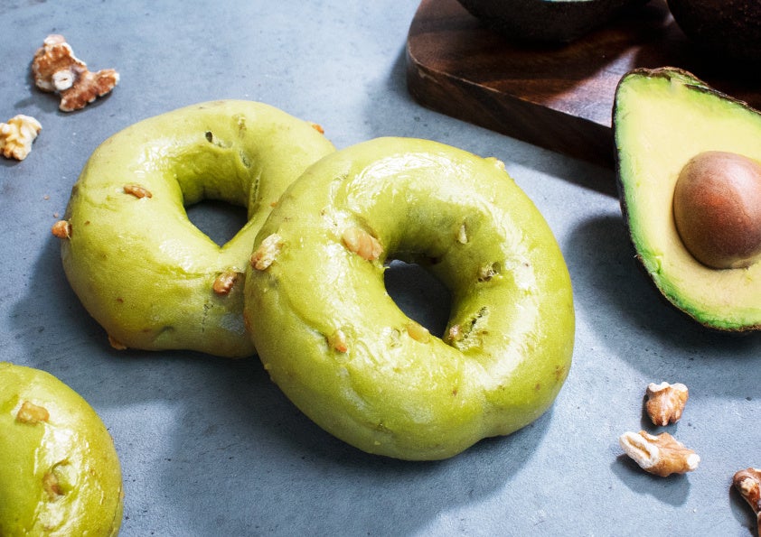 アボカドペーストとクルミを練り込み、ヘルシーでコクのあるベーグルに仕上げました。