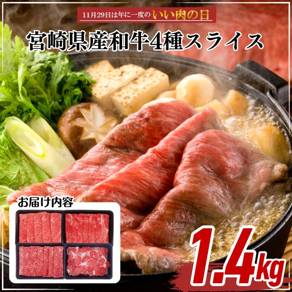 宮崎県産和牛4種スライスセット 計1.4㎏