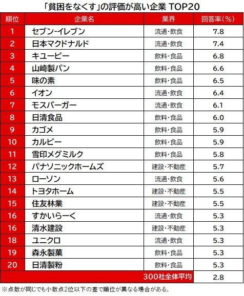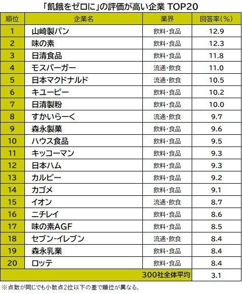 国内有力企業のSDGs取組やESG活動を消費者視点で評価する「企業版SDGs調査2024」の調査結果、「1.貧困をなくす」、「2.飢餓をゼロに」など17ゴール別に、評価が高かった企業のランキングを作成した。