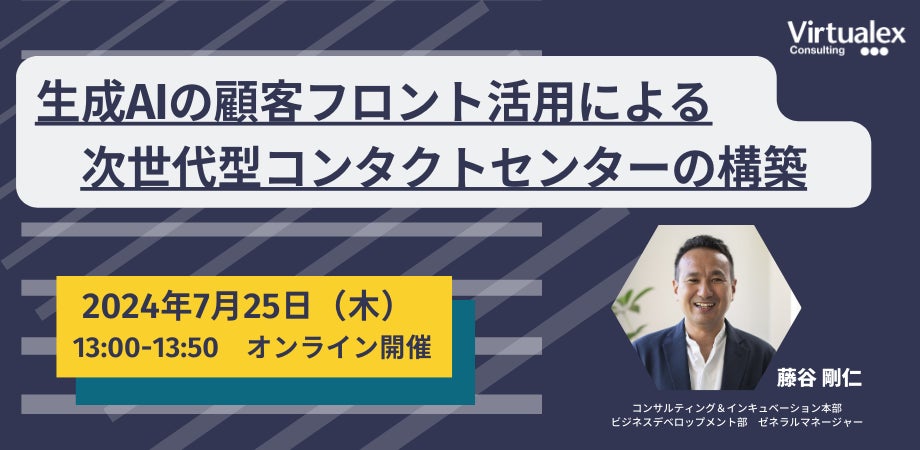 バーチャレクスグループのバーチャレクス・コンサルティング株式会社(本社:東京都港区、代表取締役社長:丸山勇人、以下、バーチャレクス)は7月25日(木)に、「生成AIの顧客フロント活用による次世代型コンタクトセンターの構築」と題したウェビナーを開催します。