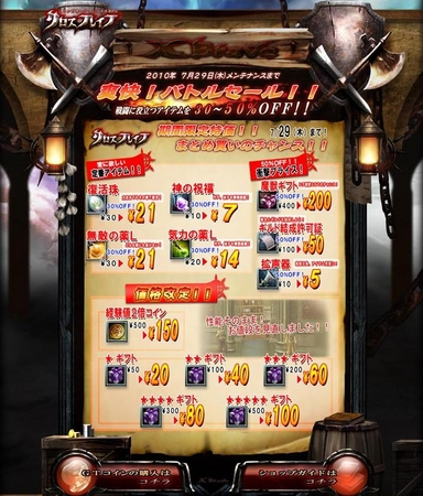 ギルドを結成できる「ギルド結成許可証」や、チャットで戦友を集める際に使う「拡声器」など、戦友探しを応援するアイテムが50%OFF!