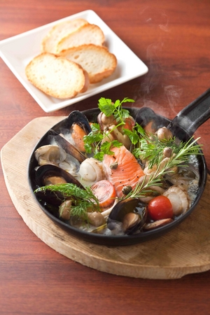 キングサーモンと色々魚介のアクアパッツァ 892円