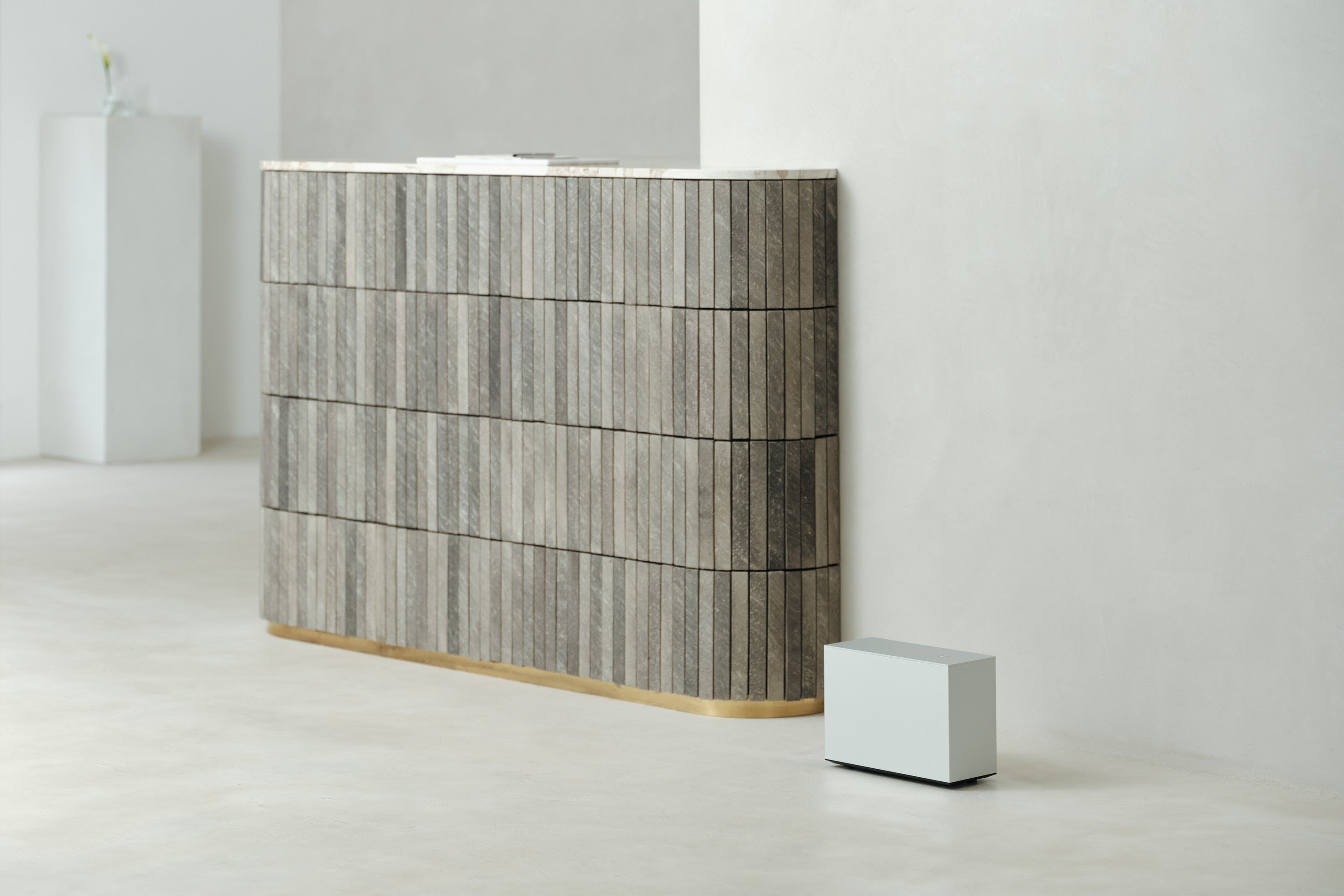 香りを引き立てるため、主張しすぎず空間に溶け込む佇まいを追求しました。金属の重厚感と軽やかさのバランスにこだわり、家具のように空間になじむ質感に仕上げています。