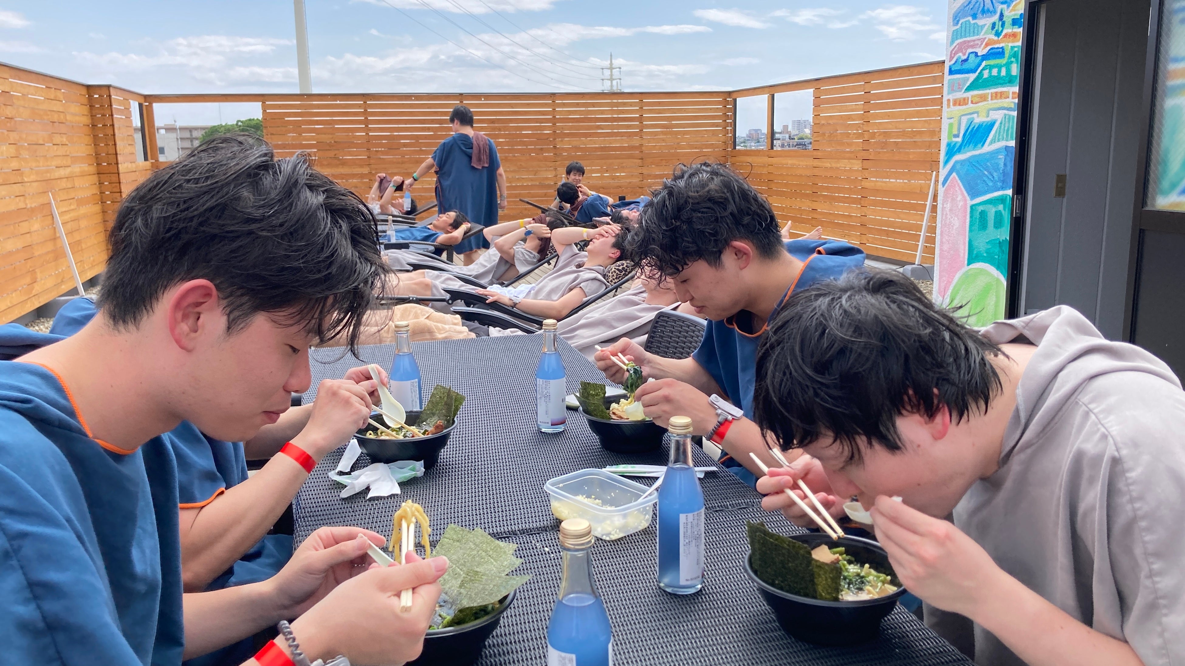 今回、宅麺.comが提供したのは “サ麺” にぴったりの濃厚ラーメン、横浜家系ラーメン作田家(東京都江戸川区)の「暴君RA-MEN」、無鉄砲(京都府木津川市)の「ラーメン」、元祖スタミナ満点らーめんすず鬼(東京都三鷹市)の「スタ満ソバ」の3種。すべて店舗で実際に提供されている麺・スープ・具材をそのまま冷凍したお取り寄せラーメンで、サウナ後の外気浴中にポンチョを着たまま食べるという初体験に参加者も興奮した様子でした。「暖かい太陽の下で外気浴した後にラーメンをそのまま食べられる最高の経験」「サウナとラーメンの掛け算が最高だった」等、その相性の良さに納得の声が多く寄せられました。
