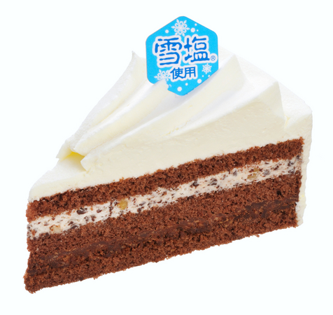 …ほんのりビターなココアスポンジの間には、チョコガナッシュと宮古島産雪塩を隠し味に使ったアーモンドプラリネチョコクランチ。チョコチップ&ナッツの食感とホワイトチョコ生クリームの軽やかな甘みがアクセント。