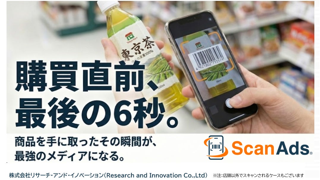 「ScanAds」は、商品やカテゴリのバーコードスキャンをトリガーとして、その場で6秒動画広告を配信できるマーケティングプラットフォームです。6秒動画再生後、事前テストで高いクリック率を記録したLP等への遷移も可能です。広告主は商品単位や商品カテゴリ単位で精緻な広告配信を実施できます。